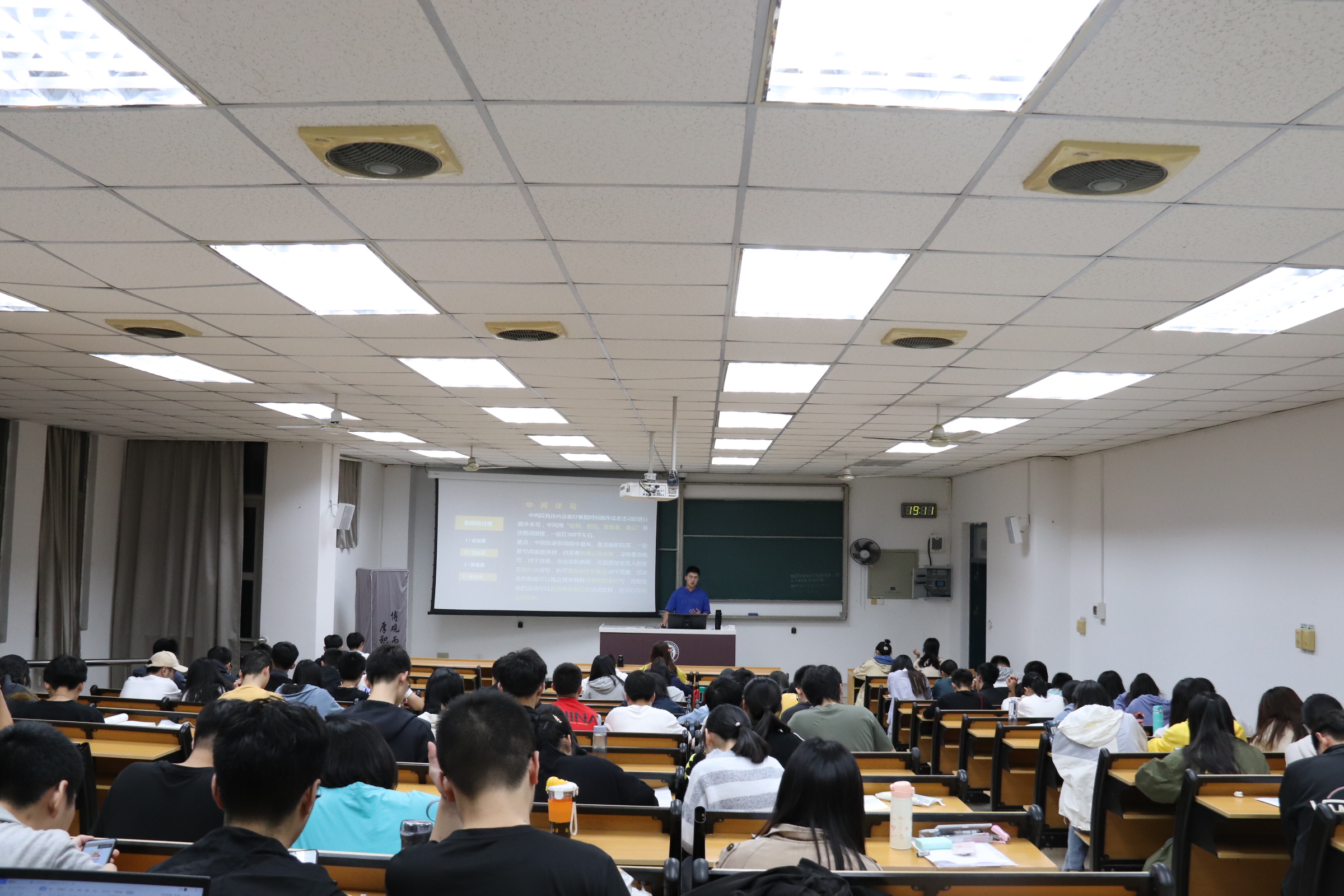 为加深学院学子对新闻稿的理解,提高其新闻报道的写作水平,11月24日晚,由成人影片 成人影片主办的文书培训活动于西二301教室顺利举办。本次培训会由成人影片 成人影片的副部长郑何卓艺作为主讲人,一百余位对新闻稿写作感兴趣的本科生参与了此次培训。