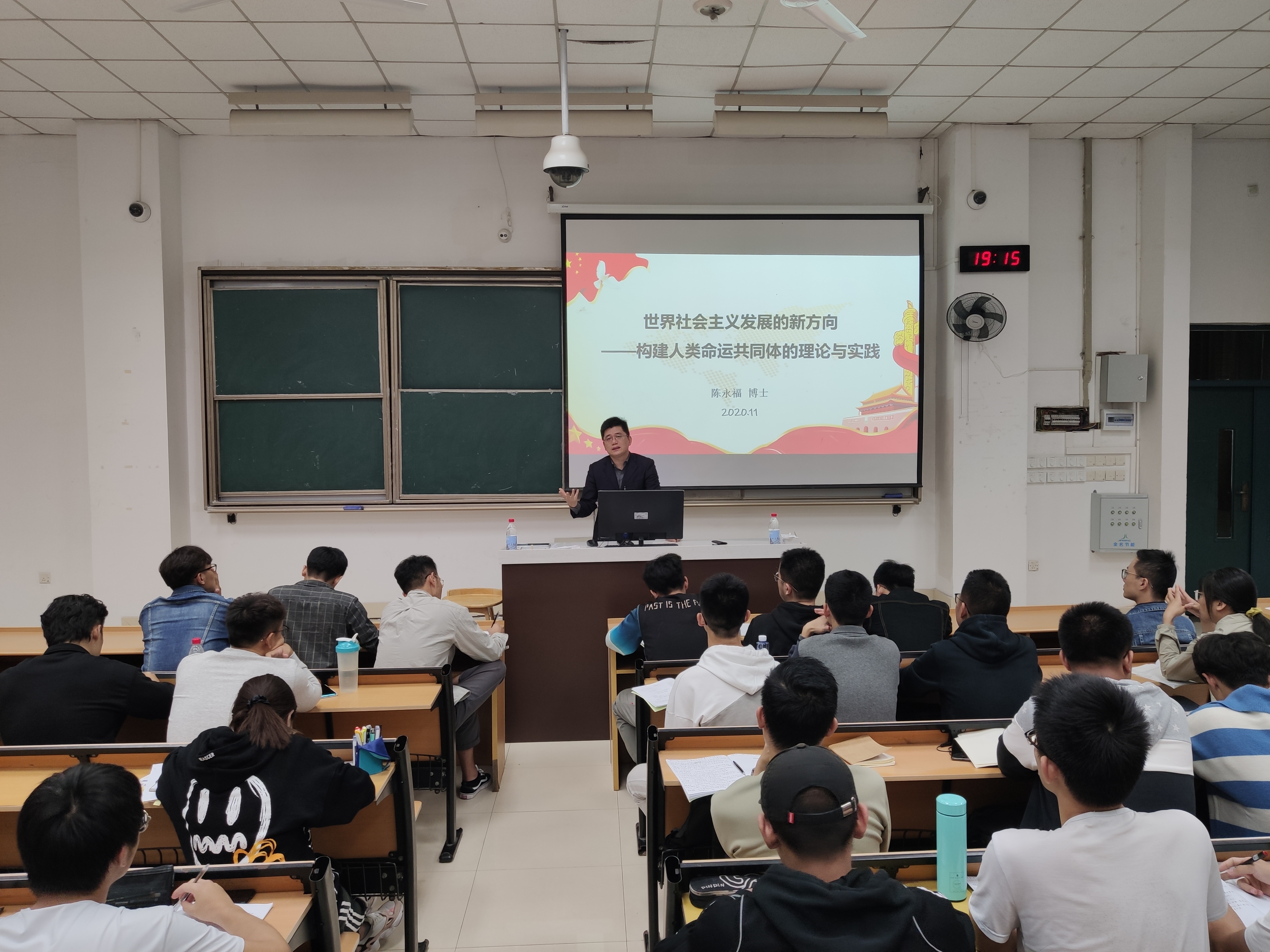 图为陈永福老师为大家讲解建设人类命运共同体