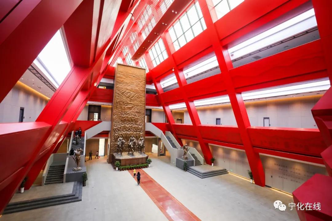 宁化是一片具有光荣革命传统的红色土地,是毛泽东、周恩来、朱德等无产阶级革命家亲手创建的革命根据地,是中央苏区的核心区,中央红军长征的四个主要出发地之一,也是最远的出发地。来到纪念馆大厅,骑着马的中国三位伟人(毛泽东、周恩来、朱德)雕塑屹立在一座巨幅浮雕前。浮雕上刻着宁化的青山绿水以及客家的土楼围屋,寓意着人民子弟兵在伟人的带领下,从群山深处走出,参加长征、参加革命,从胜利走向胜利。