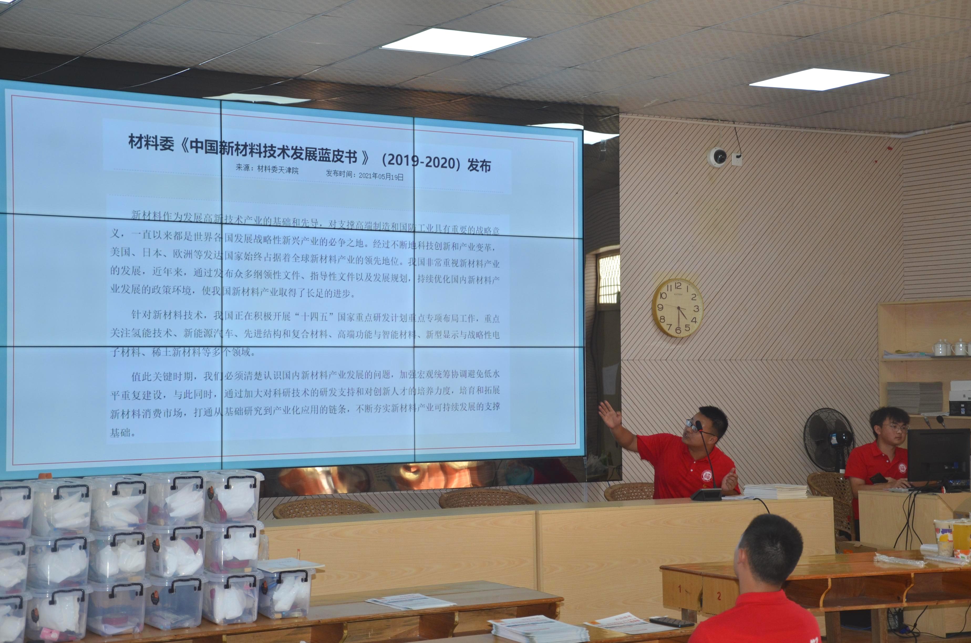 实践队队员郑锦山在为同学们介绍材料专业发展前景