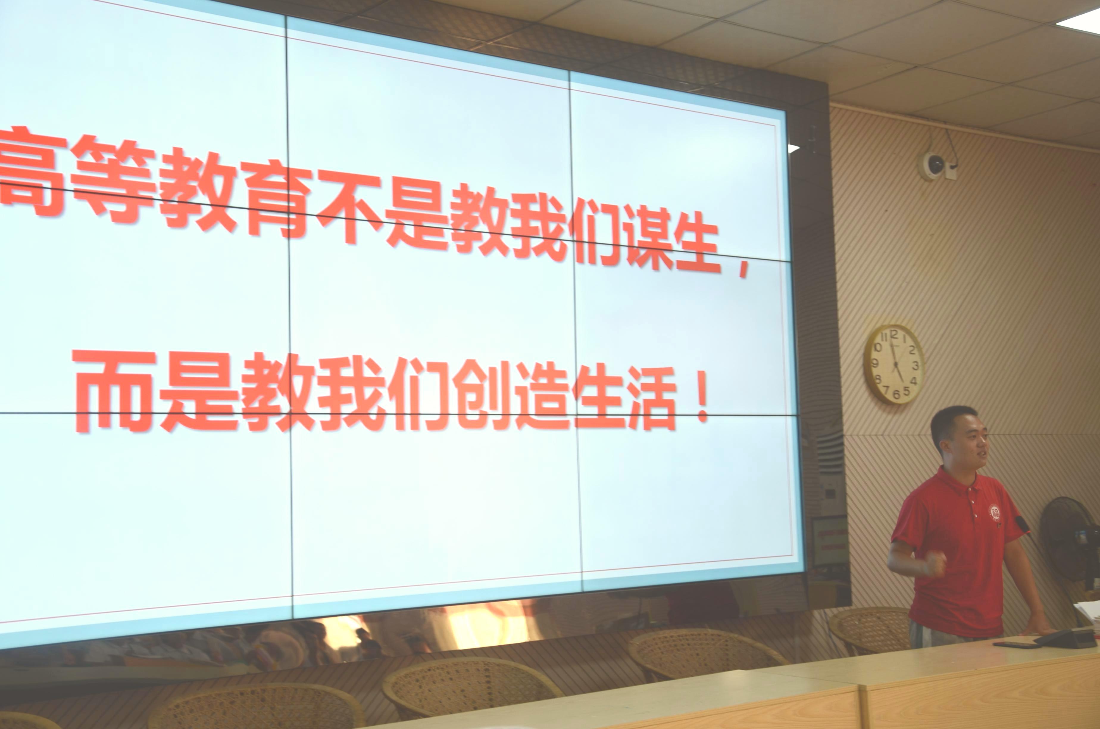 “高等教育不是教我们谋生而是教我们创造生活"这是武汉大学邓红兵教授在微博上发表的言论。实践队的队长张俊杰在本次宣讲的结尾引用这句话与在场的同学们共勉。