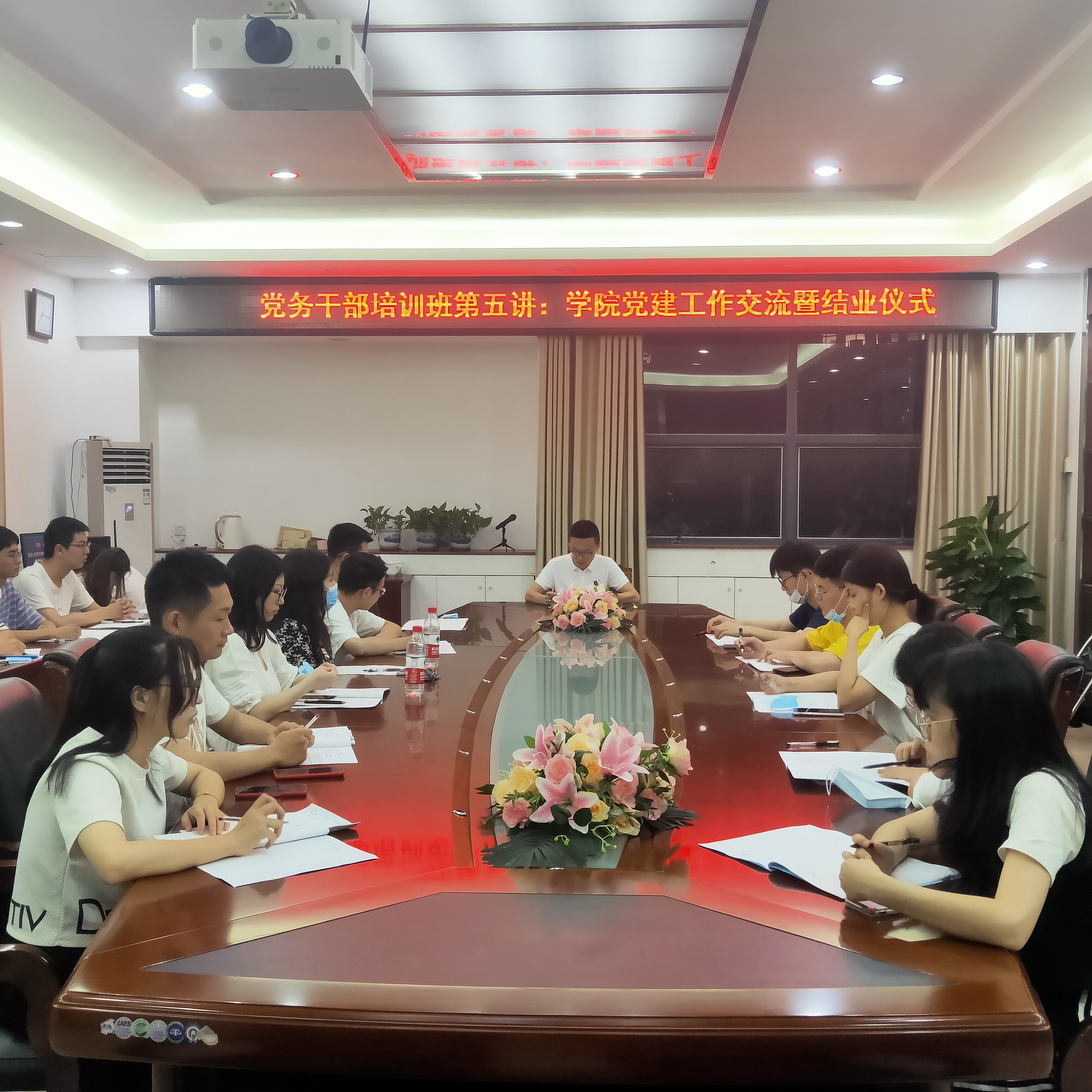 交流会结束后,进行培训班结业仪式,王文栋老师首先祝贺本期培训班的圆满结业,他指出:学生党务干部参加集中学习培训,不仅是一次难得的学习机会,也是政治生活中的一件大事,广大党务干部要以时代发展要求做好党建工作,牢记发挥党支部战斗堡垒作用,要增强想干事、能干事、干成事的素质和能力,助力党支部工作规范化。