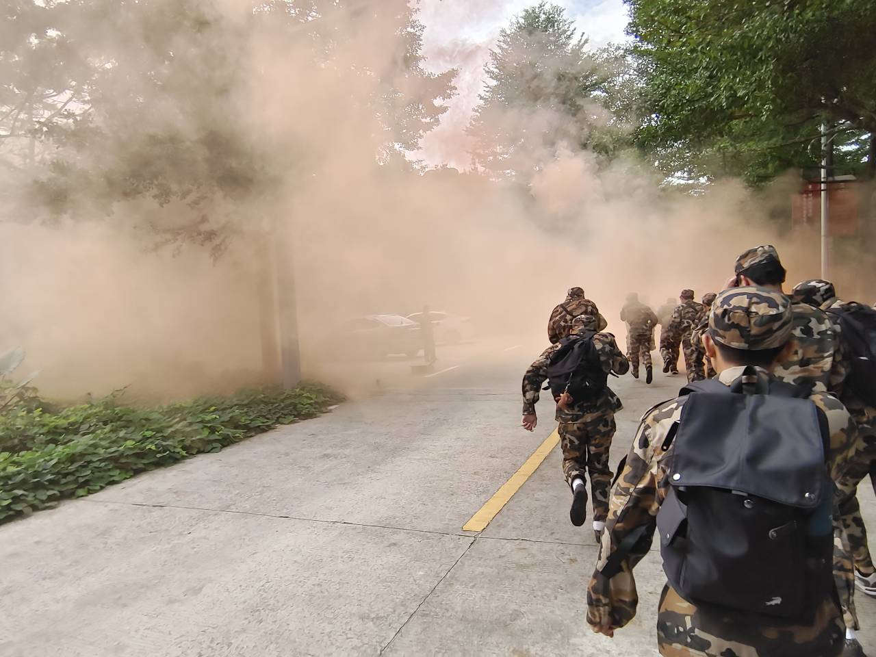 新生在嘉锡楼集结完毕。在教官的指挥下,新生精神抖擞地踏上拉练征途。在行军过程中,教官不时呼号整理队伍步伐,鼓舞士气。同学们在行进中始终保持着严明的纪律,令行禁止,气势昂扬,充分展现了材料学子的精神风貌。两次经过烟雾区时,同学们在教官的指导下捂住口鼻,弯腰快速而有序地通过。整个行军拉练过程中,同学们没有叫苦叫累、怨天尤人,而是用整齐的队列和成功的喜悦迎接了教官的视察。听从指挥,互相鼓励,不怕吃苦,勇往直前,新生们顺利完成了此次行军拉练活动