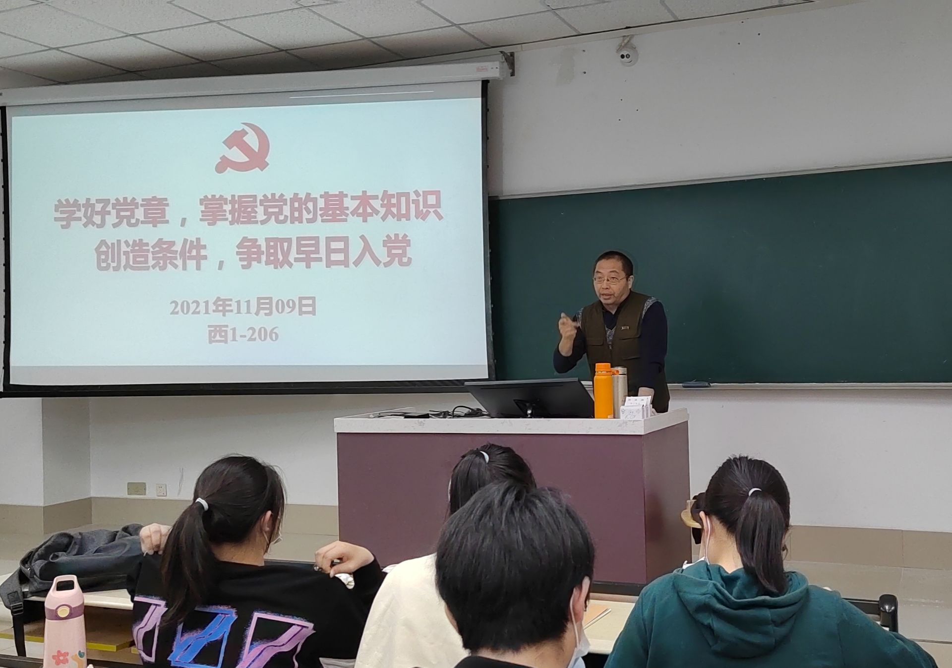 11月09日晚,成人影片 于西二-301顺利举办第27期入党积极分子培训班第一节党课,本次党课主题为《端正入党动机,党章学习辅导》,由成人影片 党委副书记王剑龙老师主讲全体第27期入党积极分子参加培训。