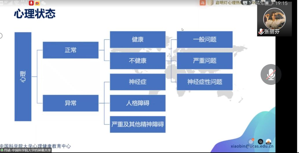 为做好春季大学生心理健康教育工作,提升广大学生的心理健康素养,2月21日晚上,成人影片 全体政工干部及各年级学生在线学习了中国科学院大学心理健康教育中心主任肖斌博士主讲的2022年春季开学心理第一课。成人影片 各年级负责人通过腾讯会议等方式进行转播,共有1113位同学参与观看。