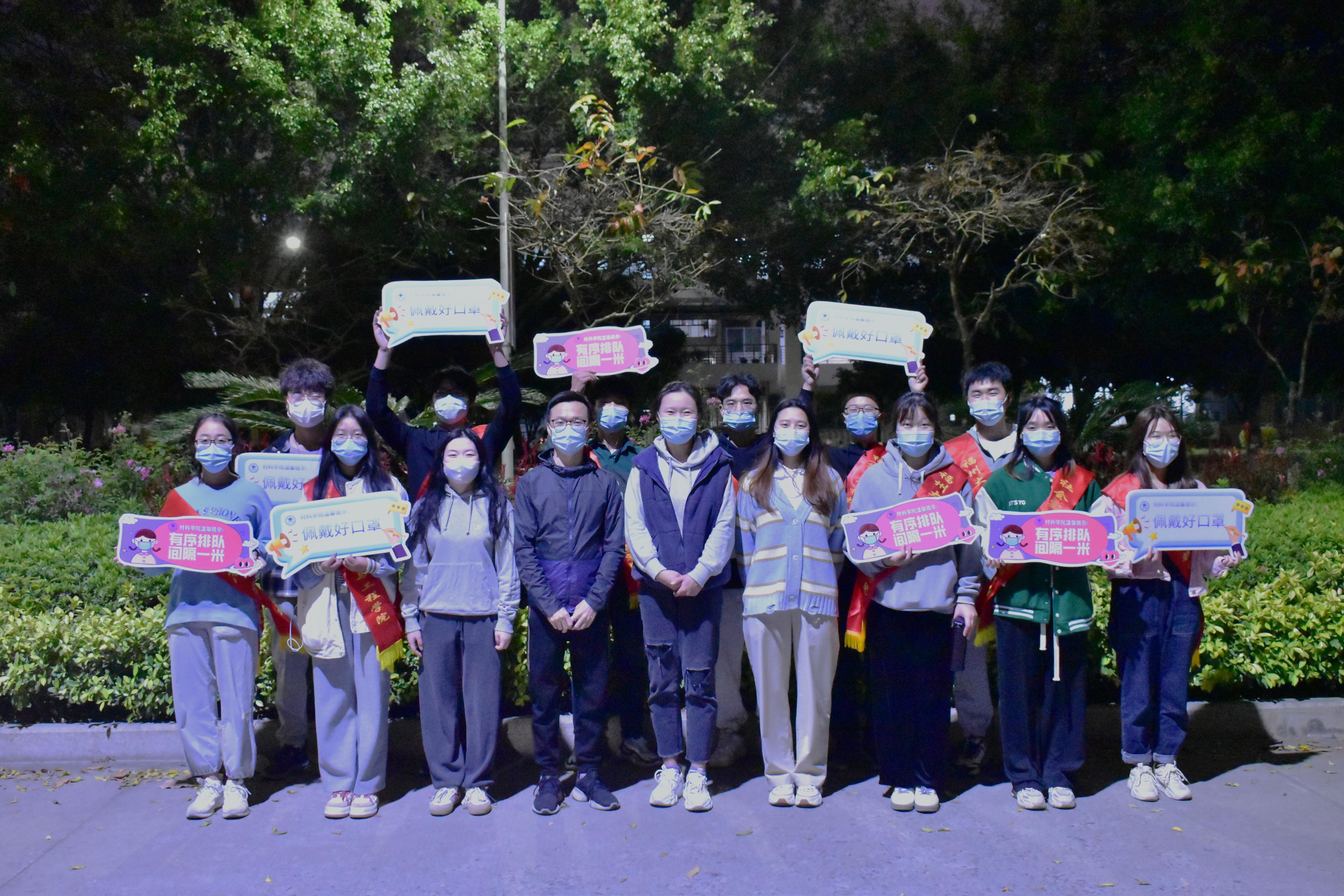 核酸检测前,党员突击队成员提前到达检测地点进行布置,备好宣传标语,为核酸检测工作的开展做好准备。检测期间,党员突击队成员维护现场秩序,提醒同学们佩戴好口罩,保持一米间隔,协助医护人员进行核酸检测工作。同时,进行核酸检测的同学们积极配合医护人员工作,全员核酸检测工作顺利完成。