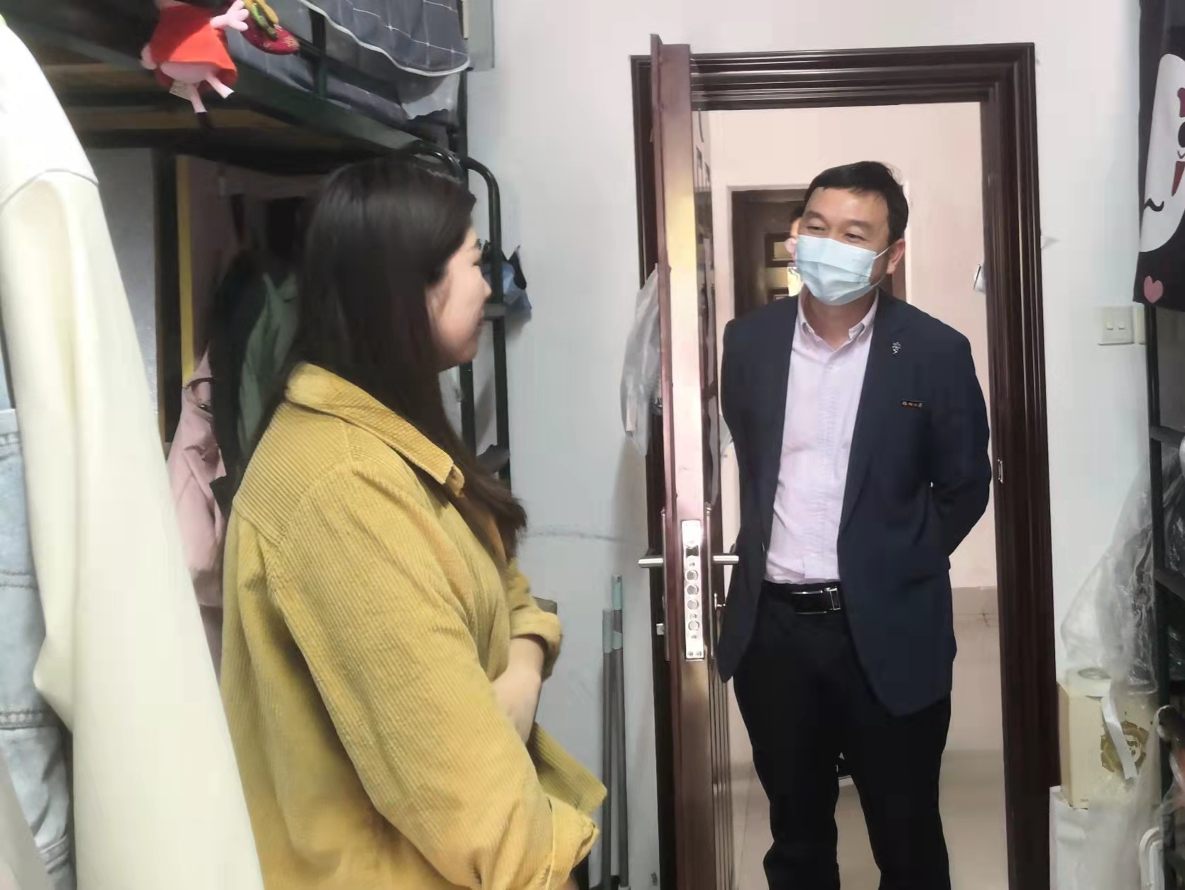 在走访过程中,张志忠副书记与学生亲切交流,细心询问学生的学习和生活情况,勉励大家努力学习,叮嘱同学们注意疫情期间安全防范、消防安全和寝室卫生,引导同学们建设良好的宿舍环境。张志忠副书记提醒同学们,要严格按照学校疫情防控要求,不可松懈。在校园内活动时,要佩戴好口罩,做好个人防护,少聚集、勤洗手,宿舍常通风。张志忠副书记与大四学生亲切交流时,询问了学生的就业和升学情况,对学生取得的优异成绩表示祝贺。