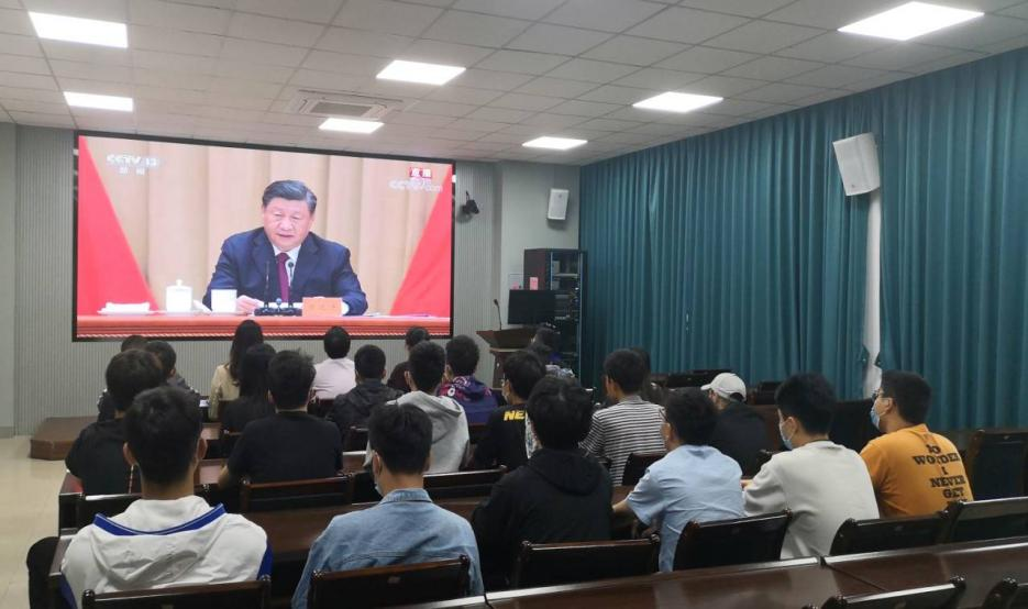 5月10日上午,成人影片 组织师生于材料楼404会议室集体观看庆祝中国共产主义青年团成立100周年大会直播,学院党委张志忠副书记出席会议,团委牛秋月书记、辅导员王怡和王文栋老师,团委、学生会、研究生会学生代表参加。