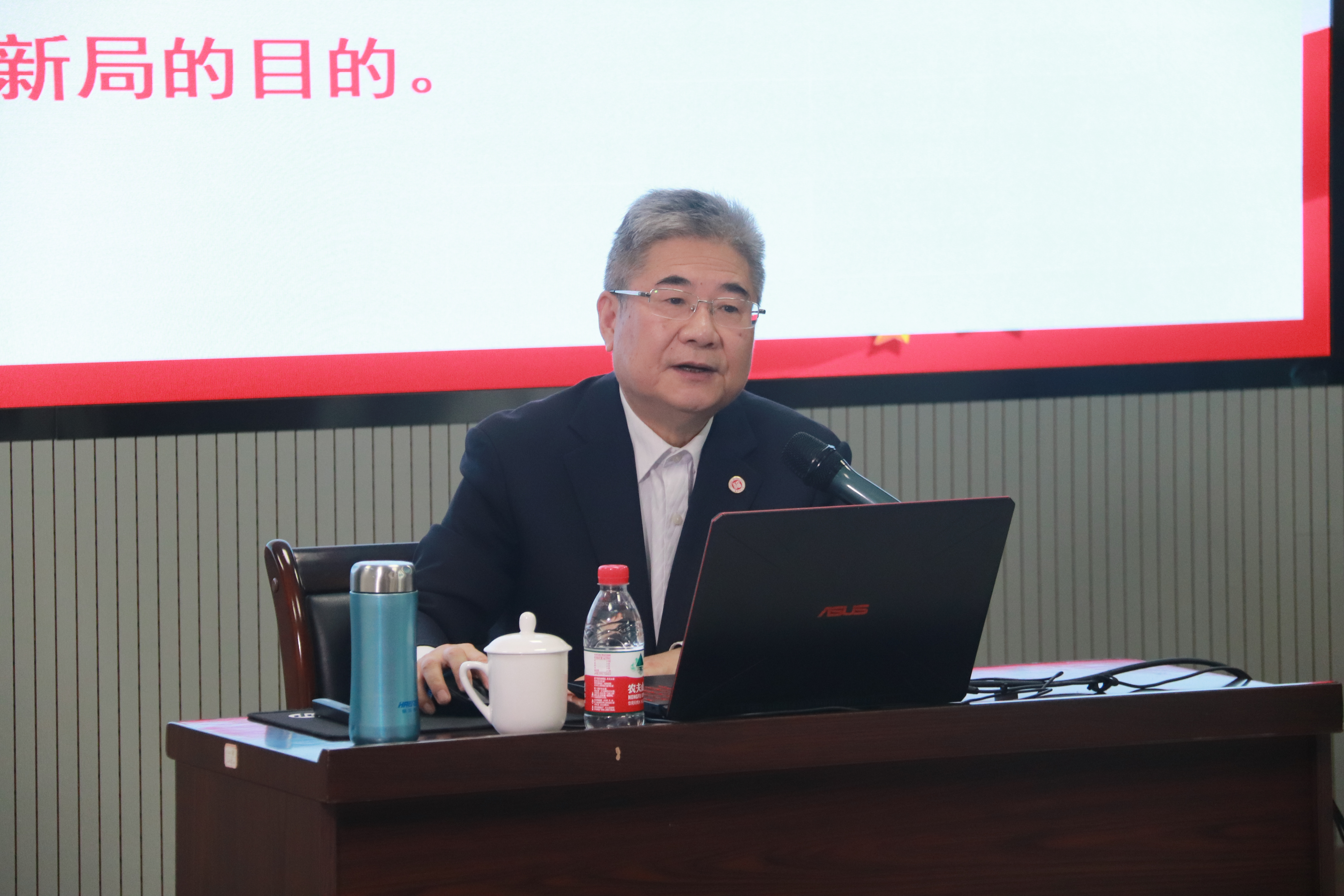 陈少平研究员围绕《回望党的历史,不忘革命初心;坚定理想信念,凝聚奋进力量》这一主题进行授课,结合自身经历,分别从党史学习要求、如何学习党史、阅读红色经典、如何践行党史四个方面展开阐述。首先,陈少平研究员引用了习近平总书记“一件大事”和三个“必然要求”的重要讲话,向学员们阐明了推动党史学习教育常态化长效化的重要性和必要性。接着,陈少平研究员指明了理论联系实际的党史学习方法,希望大家树立正确的党史观,把学习党史与自身实际和学习成才结合起来。最后,陈少平研究员讲解了金一南将军所著《苦难辉煌》,结合《苦难辉煌》纪录片中的血战湘江片段,鼓励学员们积极阅读红色经典,牢记党不断克服艰难险阻而不懈奋斗的光辉历史,坚定理想信念、培养艰苦奋斗的精神,勇做新时代的奋斗者、开拓者、奉献者。