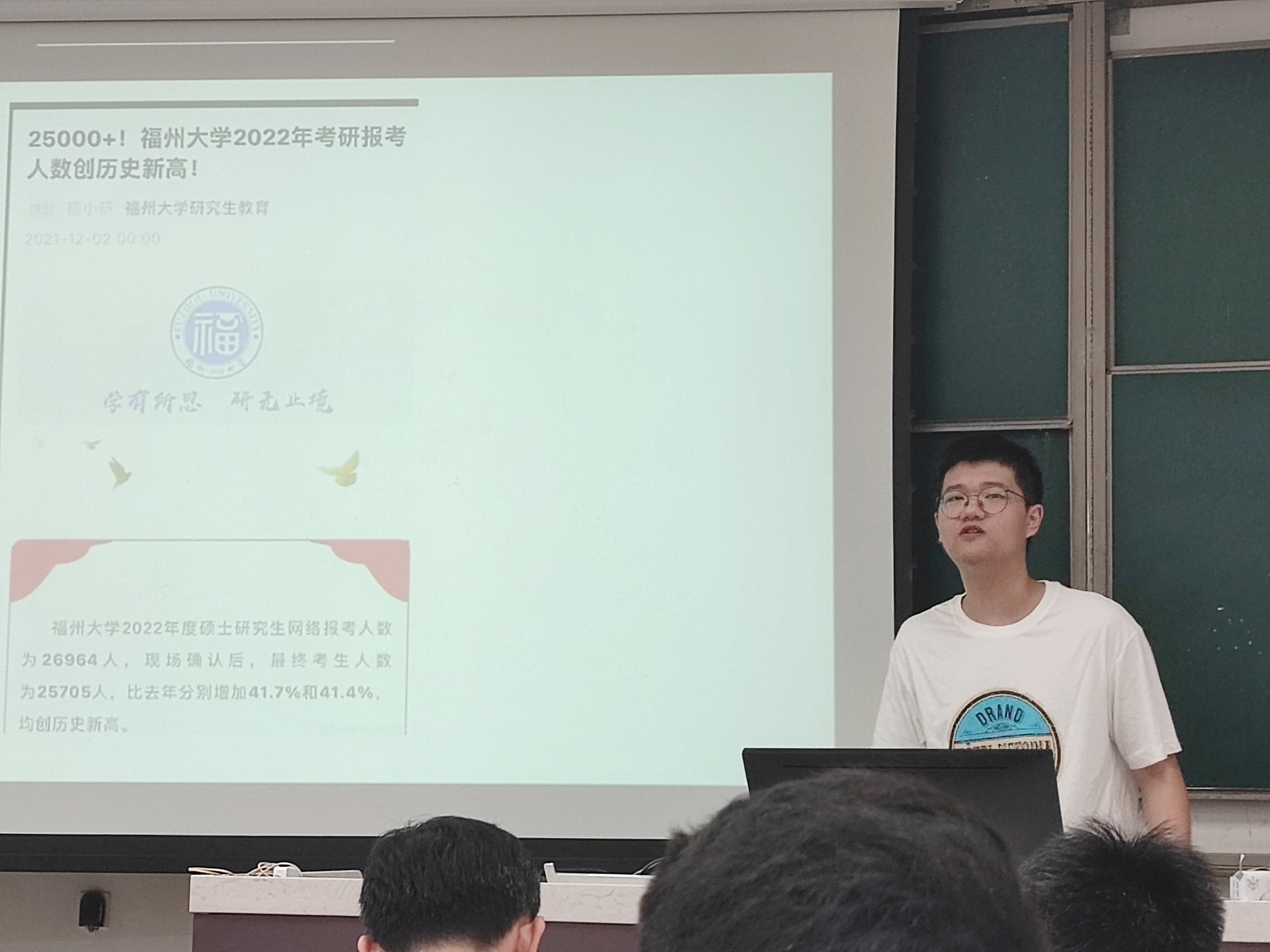 接着,陈孔发老师详细介绍了近三年来学院研究生复试情况,他结合过去三年学院考研情况具体数据对考研形势、调剂方案、往年录取及调剂情况做了分析,他建议同学们,不仅要努力备考,也要谨慎选择,认真考虑好合适的报考方向。