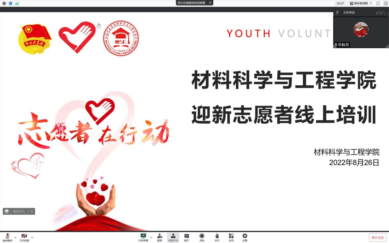 举行迎新志愿者线上培训会,会议由学院团委牛秋月书记主持。