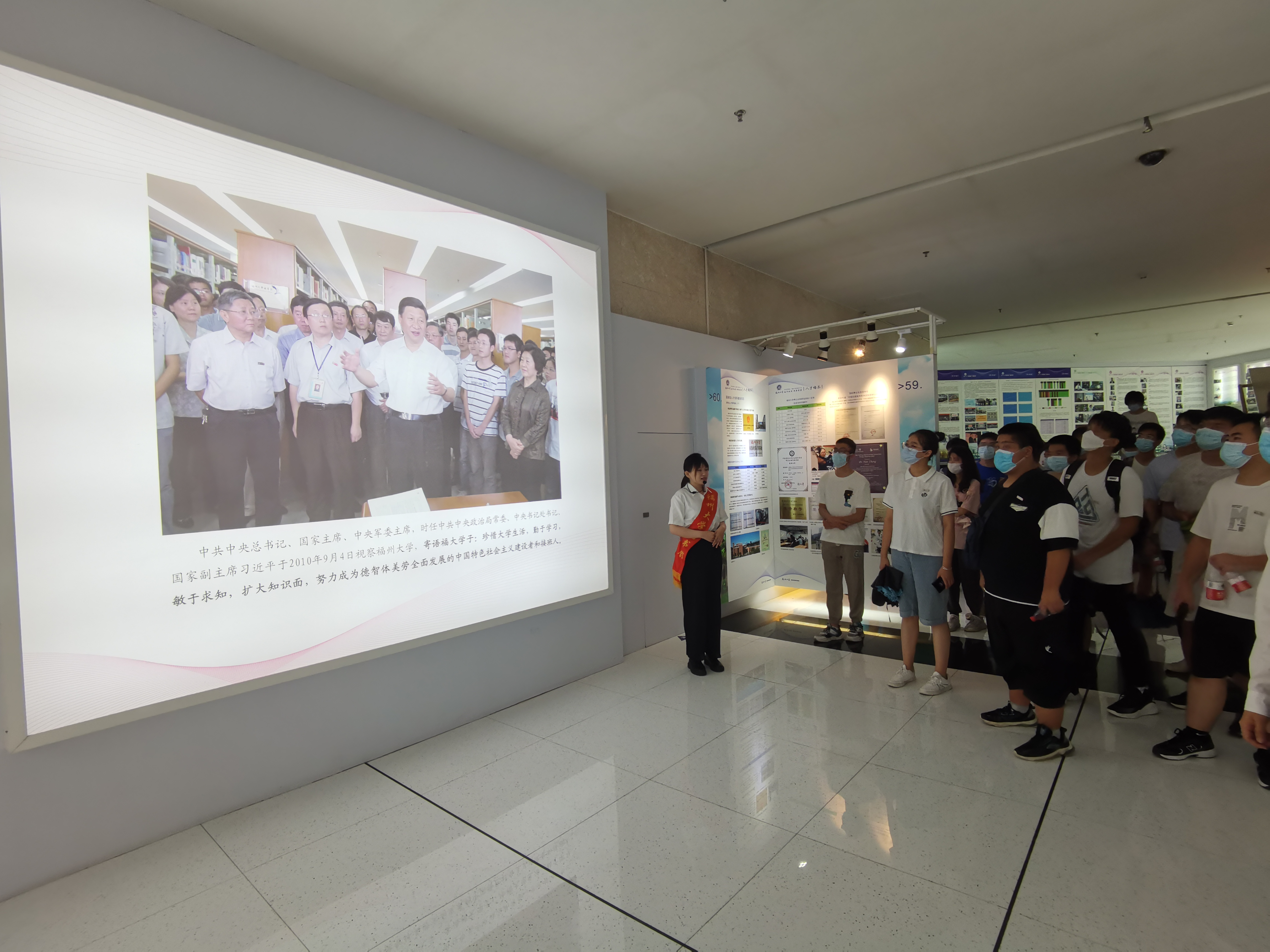 在参观校史馆时,讲解人员向新生们介绍了成人影片 64年来出现的伟人事迹、“三种精神”的内核以及筚路蓝缕的创业、奋斗、发展史,使新生们对福大“明德至诚,博学远志”的校训有了更深的理解。