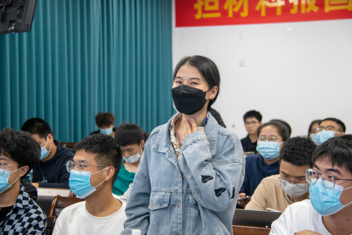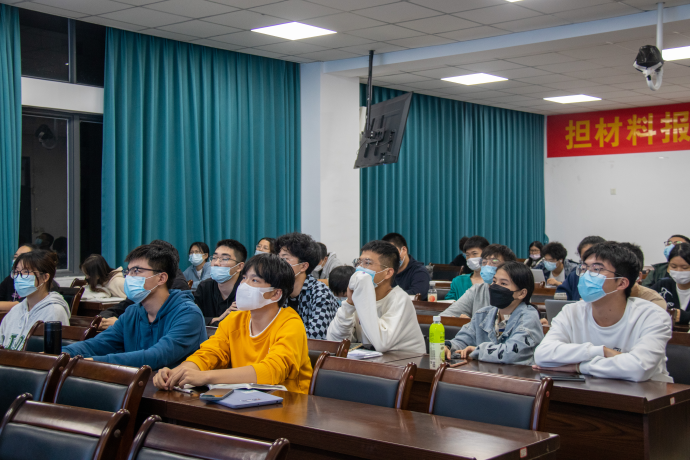 本次活动以“担材料报国重任,做时代有志青年”为主题,谢俊慧老师以刚刚召开的党的二十大会议上习近平总书记所提出的“实现高水平科技自立自强”的号召为引,提出对同学们参加“挑战杯”等各类科创竞赛,以赛促学,增强创新能力,为中华民族的伟大复兴贡献自己的力量的殷切希望。