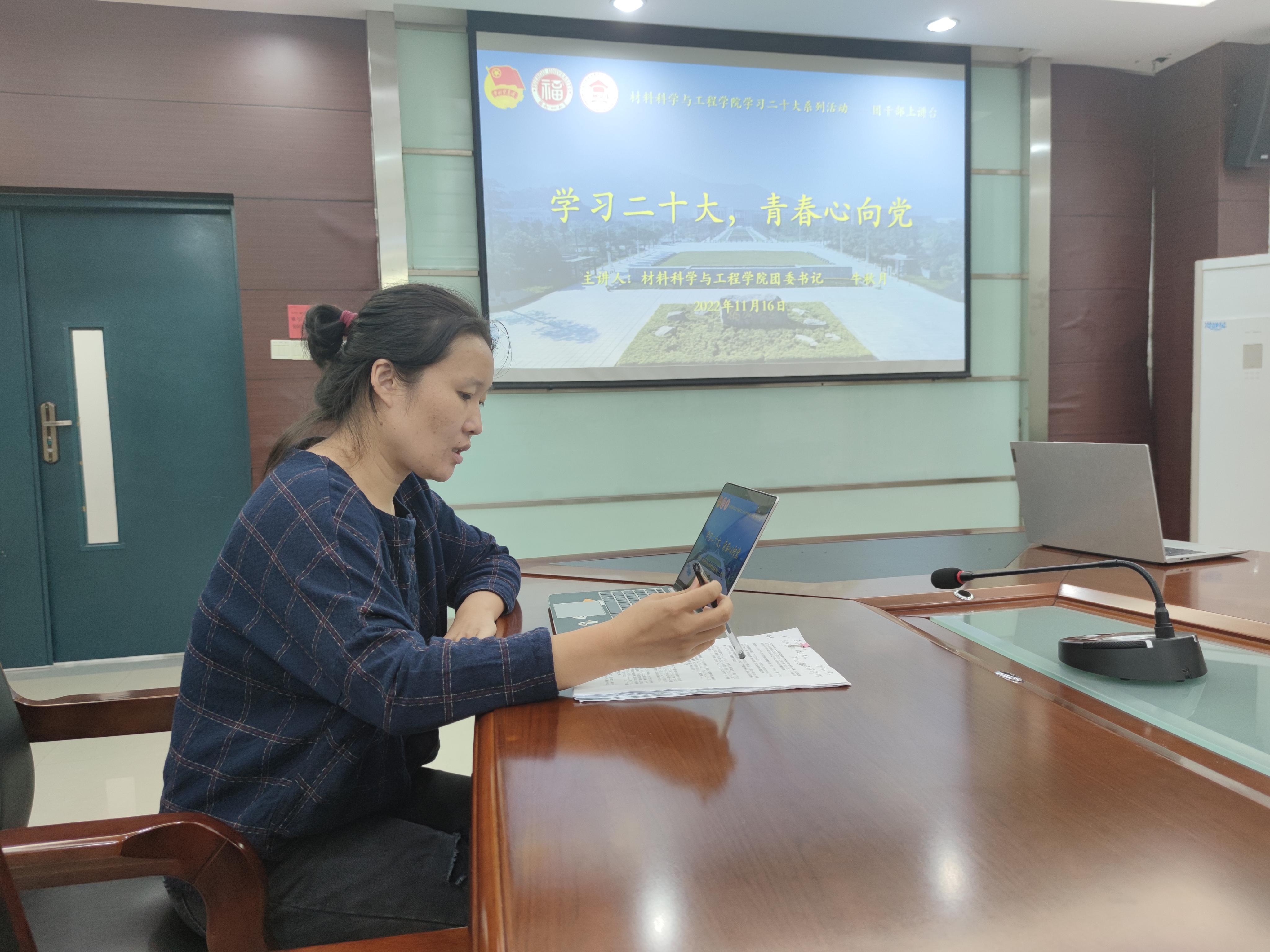 11月16日晚21时30分,成人影片 学习二十大系列活动——团干部上讲台活动于腾讯会议顺利开展。本次活动由学院团委书记牛秋月老师主讲,学生会学生骨干、学院全体团支部书记参会。