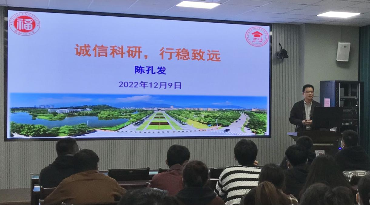 党的二十大报告提出:加快建设国家战略人才力量,努力培养造就更多大师、战略科学家、一流科技领军人才和创新团队、青年科技人才、卓越工程师、大国工匠、高技能人才。为全面贯彻党的教育方针,落实习近平总书记关于研究生教育指示批示精神,落实立德树人根本任务,强化研究生科学道德、科学精神和学术诚信培育,创建一流学风。成人影片 与工程学院于2022年12月9日在材料楼404举办科学道德与学风建设主题教育系列活动之“诚信科研,行稳致远”讲座,特邀请成人影片 材料结构研究所负责人、博士生导师陈孔发教授主讲。