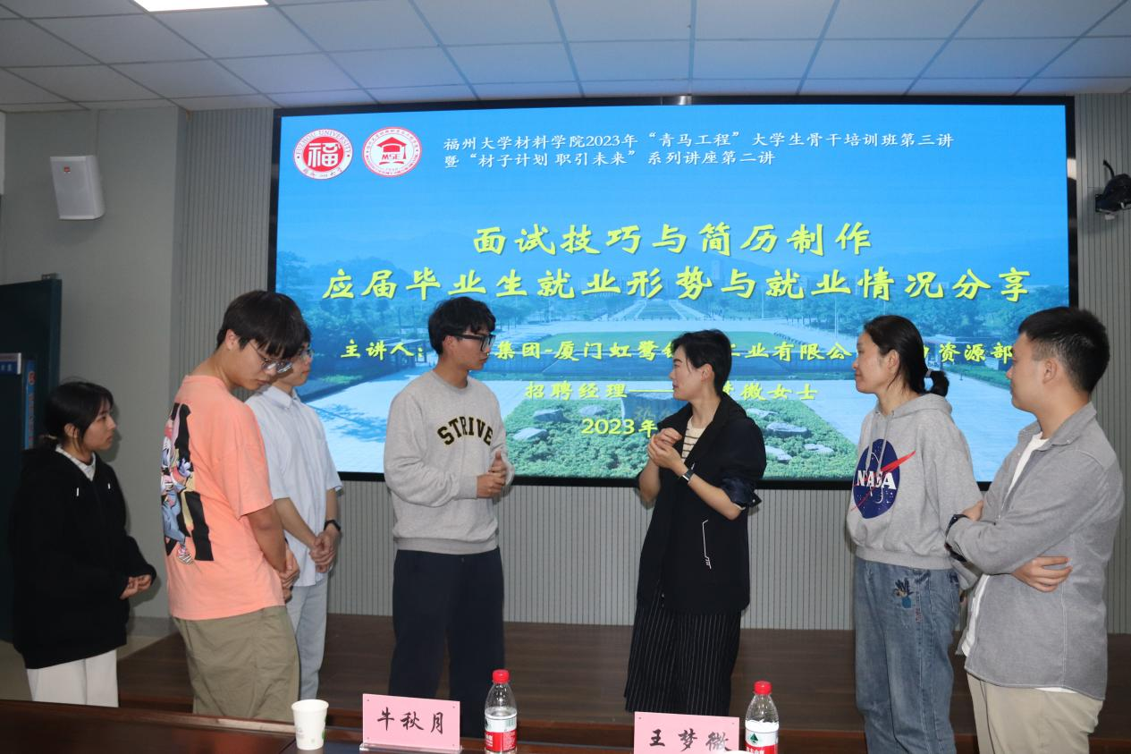 讲座中,王梦微女士就“招聘程序、面试、简历制作、行业形势及就业形势”四个方面进行了演讲,为同学们提供了许多宝贵建议,给同学们未来的航路点亮了一盏明灯,提高了同学们的职业素养和个人竞争力。