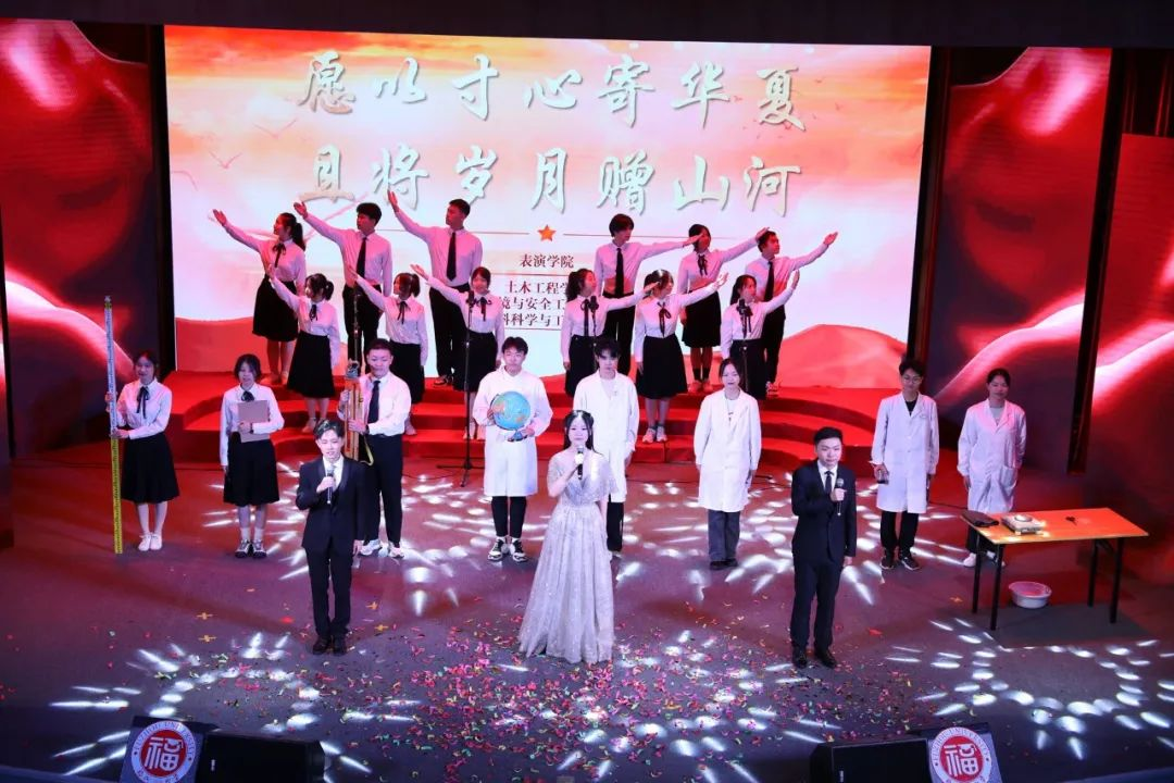在本次比赛中,材料、环安、土木学院携手带来的《六十五载栉风雨,青春逐梦书华章》使人眼前一亮。东南福大、浴火熔金,培养福大儿女自强不息;海西翘楚、学术精深,引领三院学子开拓创新。《六十五载栉风雨,青春逐梦抒华章》呈现了土木、环安、材料学子各具特色的学院风采,展现了福大儿女积极向上的青春风貌。成人影片 以掷地之声宣扬材料人锲而不舍,自强奋斗的精神,以丰富的语言传达浓烈真挚的情感。成人影片 的同学积极参与并不辞辛苦地按时参与每次排练,最终不负众望荣获三等奖。