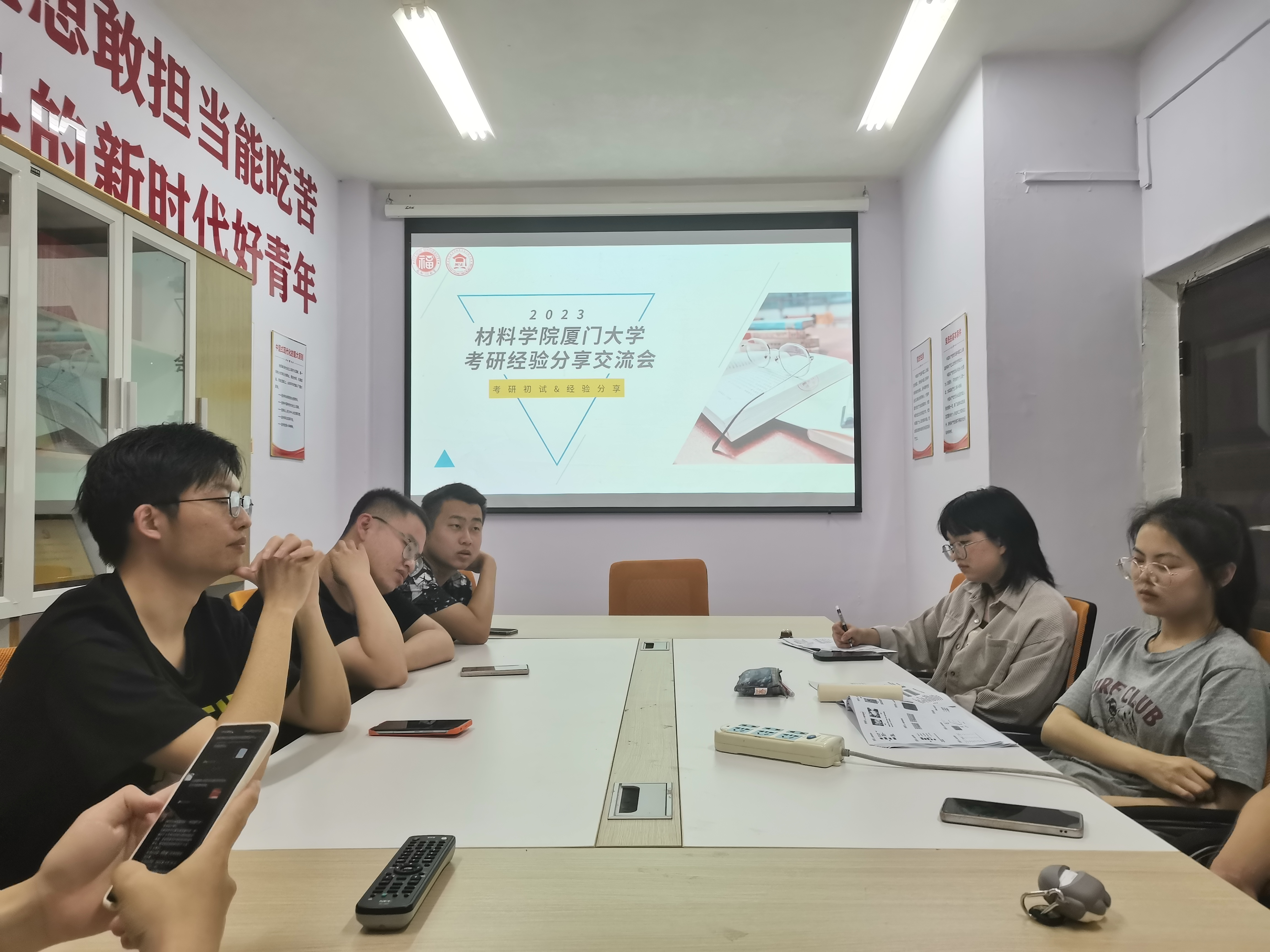 5月25日晚上,在8号楼4楼活动室开展厦门大学考研经验分享会,余瀛、肖飞、杨天赐三位学长围绕备考经验、心态调适等方面进行分享,并与同学们进行深入交流,给予针对性帮助。