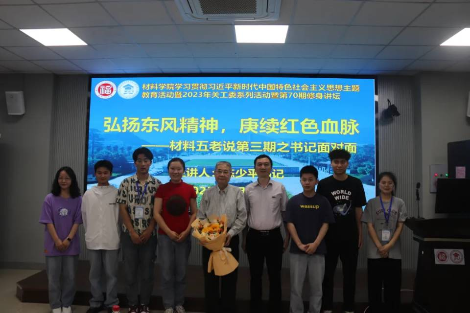为深入学习领会习近平总书记在学习贯彻习近平新时代中国特色社会主义思想主题教育工作会议上的重要讲话精神,深刻领悟“两个确立”的决定性意义、坚决做到“两个维护”的重大意义,指引年轻一辈向老前辈们学习,传承红色基因,弘扬五老精神,5月25日下午,成人影片 于旗山校区材料楼404举办成人影片 主题教育活动暨2023年关工委系列活动暨第70期修身讲坛之材料五老说第三期——书记面对面。