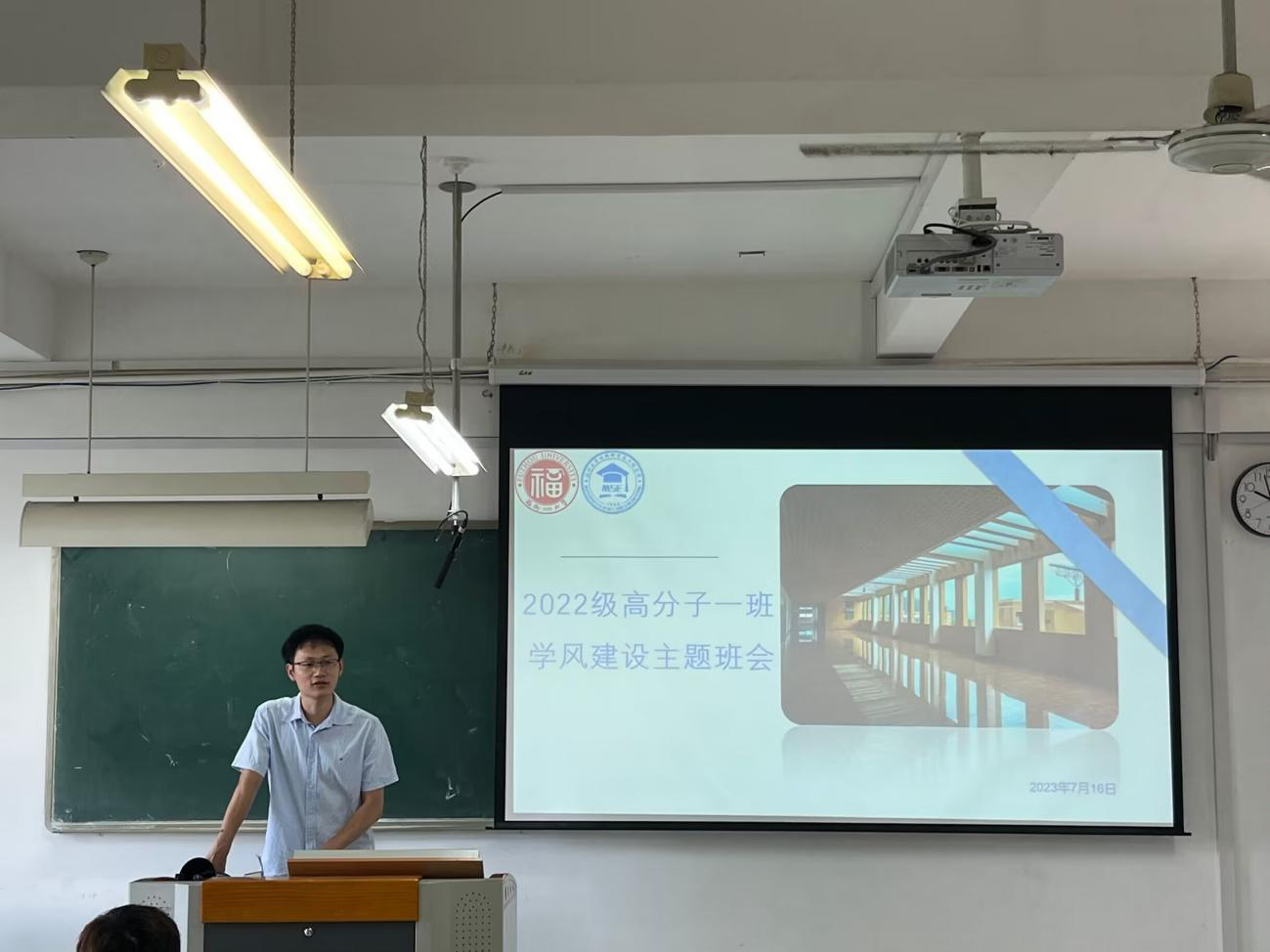 高分子1班班主任陈鸿铭副教授首先对同学们目前学习存在的问题进行了分析,并围绕学业规划、学科竞赛等主题,详细阐述了在大二新学期开始后同学们应重点关注的方面,使同学们对新学期有了更加清晰的整体规划。