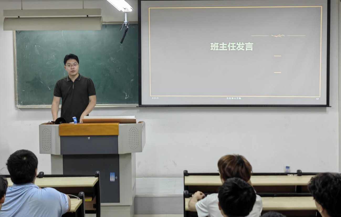 材料2班班主任黄瀚林副教授通过讲述自身军训经历,分析了军训在改善生活习惯、提高身体素质等方面的作用,提高了同学们对军训的重视程度,鼓励同学们认真制定学习目标,尽早明确职业生涯规划。