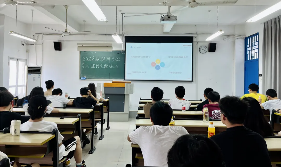 利用军训期间开展2022级学生学业发展指导主题班会。各班班主任结合专业特点,发挥理论优势,帮助2022级同学更好地适应大二生活、扎实专业基础、做好学业规划、拓宽学术科研视野。