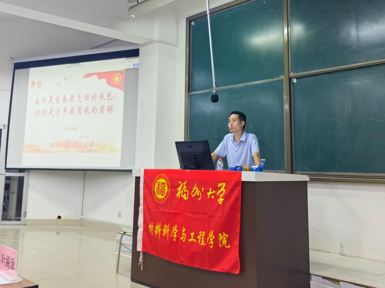 讲座伊始,叶阁泽副书记就如何做一个合格的团员、如何保持自身先进性及团员的形象和责任是何展开。用诙谐幽默的语言通过团旗、团徽的介绍,增强现场同学们的政治意识、组织意识和模范带头意识等;通过讲述我校共青团员在志愿服务、科创竞赛、抗击疫情等等方面的事迹,结合成人影片 “三种精神”和校训,以先进典型鼓励同学们发挥先锋模范带头作用,在新时代书写下属于福大人的绚丽的青春篇章。并勉励同学们要树立理想信念,为实现理想而努力拼搏,认识到只有将个人理想和社会理想有机统一起来,将个人梦与国家梦相结合,才能使理想更有价值和有意义。