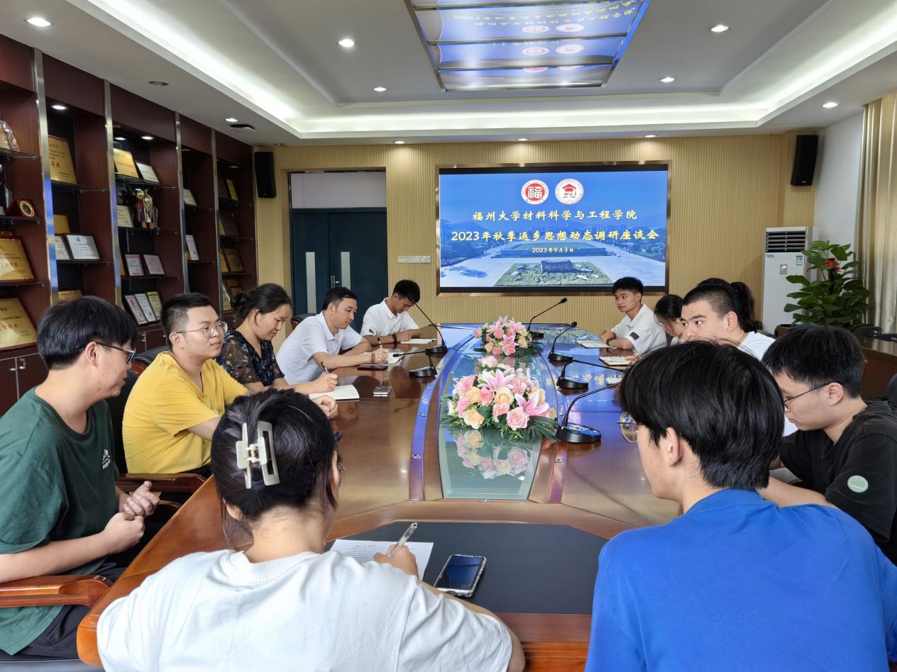 9月3日下午,成人影片 在嘉锡楼313会议室召开2023年秋季返乡思想动态调研座谈会,由学院党委张志忠副书记主持,团委书记牛秋月老师、辅导员张庭士老师及学生干部参加会议。