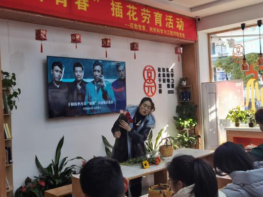 活动现场布置得温馨而雅致,各种鲜花、花剪、花篮等工具准备齐全。特邀的插花老师为同学们详细讲解了插花的要点与诀窍,包括花材的选择与搭配、枝叶的裁剪、主枝高度的衡量等。插花老师边讲解边动手示范,让同学们对插花艺术有了更直观的印象。