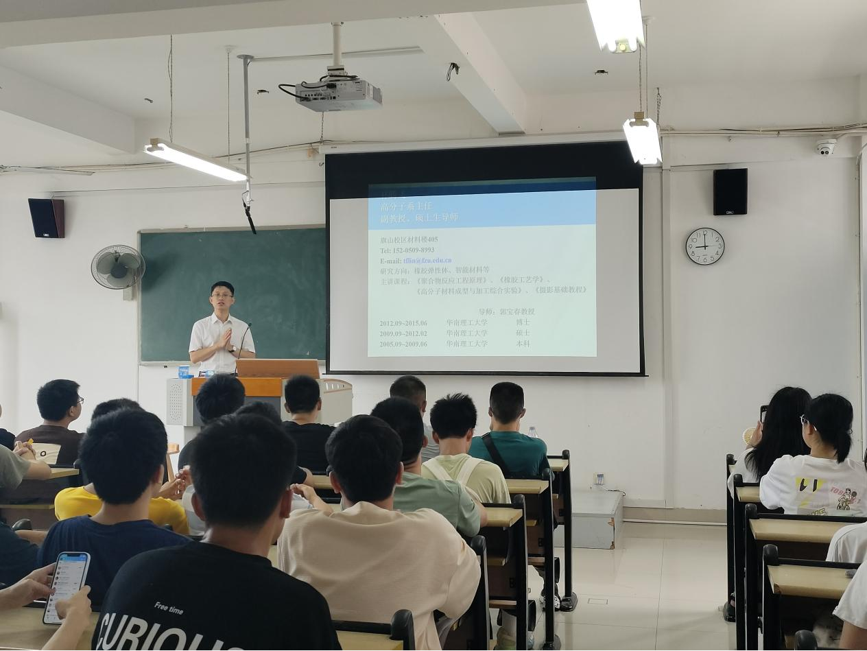 8月29日上午,高分子科学与工程专业系主任林腾飞副教授来到铜盘校区开展高分子科学与工程专业介绍讲座,与高分子专业的大一新同学们面对面交流, 全方位向同学们介绍高分子科学与工程专业的各方面,为同学们答疑解惑。