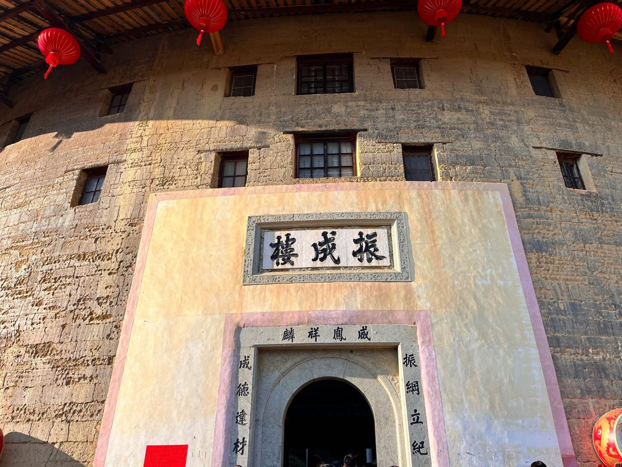 “土楼王子”振成楼门前的楹联“振纲立纪 成德达才”展现了老楼主林逊之的家国情怀,也体现了客家人不负祖训,建功立业、报效国家的精神。在振成楼内外,当地人都非常热情地为游客介绍民俗文化,讲述着客家人从南迁到安居乐业的艰辛,展现了客家人热情好客、勤劳勇敢的品质。