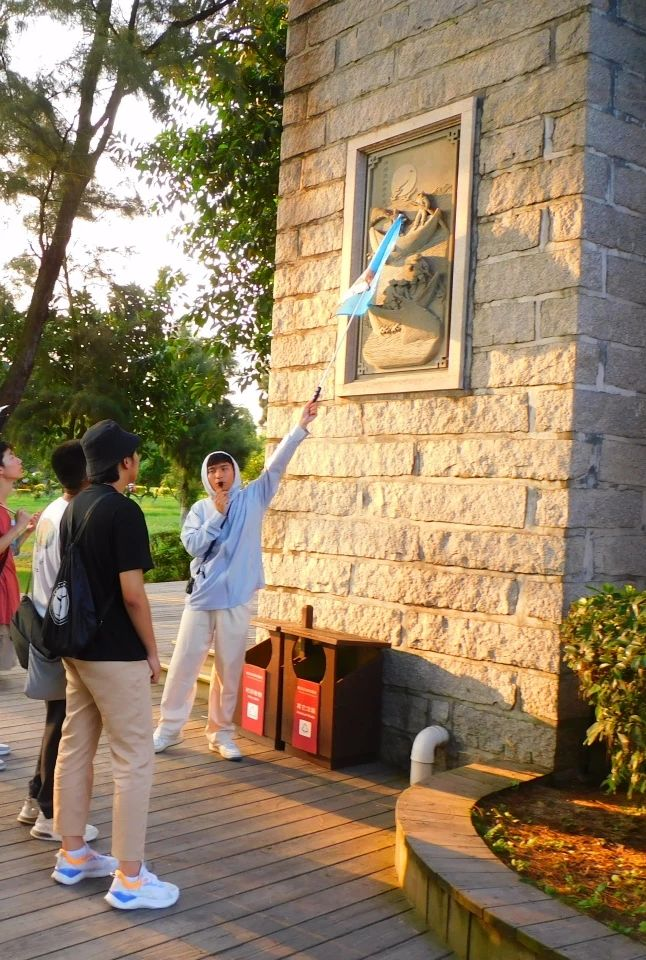 接着,实践队员们来到了古城前的惠安女石画像旁,石雕画像上描绘着惠安女帮助丈夫出海捕捞、在家中照顾儿女的画面,古时科技不发达,出海往往是九死一生,因此,惠安女也逐渐成为了贤惠能干的代名词,惠安女精神是泉州人爱拼敢赢精神的生动写照,也是泉州精神的一个重要组成部分。