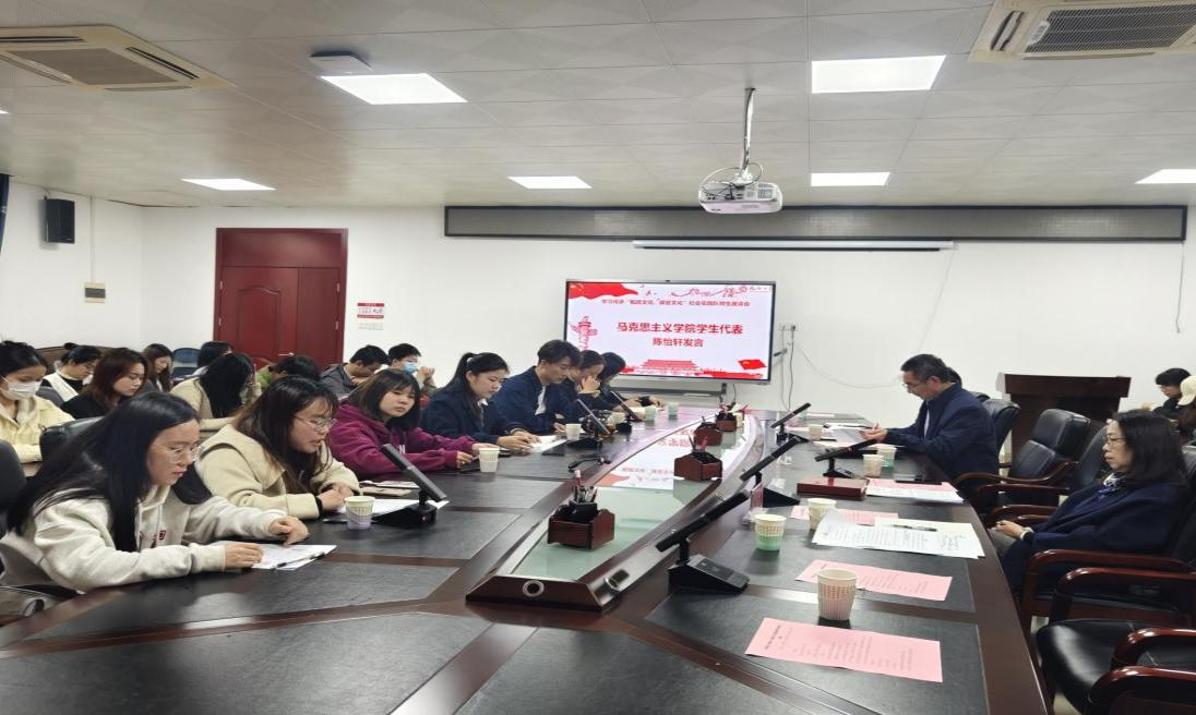 为在社会实践中学习贯彻习近平新时代中国特色社会主义思想主题教育,深入学习宣传党的二十大精神,1月19日下午于马克思主义学院301多功能厅 ,成人影片 党委张志忠副书记、团委书记牛秋月老师带领“材子八闽承古韵,闽域文化谱新篇”实践队参加学习传承“船政文化、侯官文化”社会实践队师生座谈会。