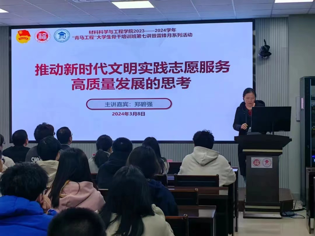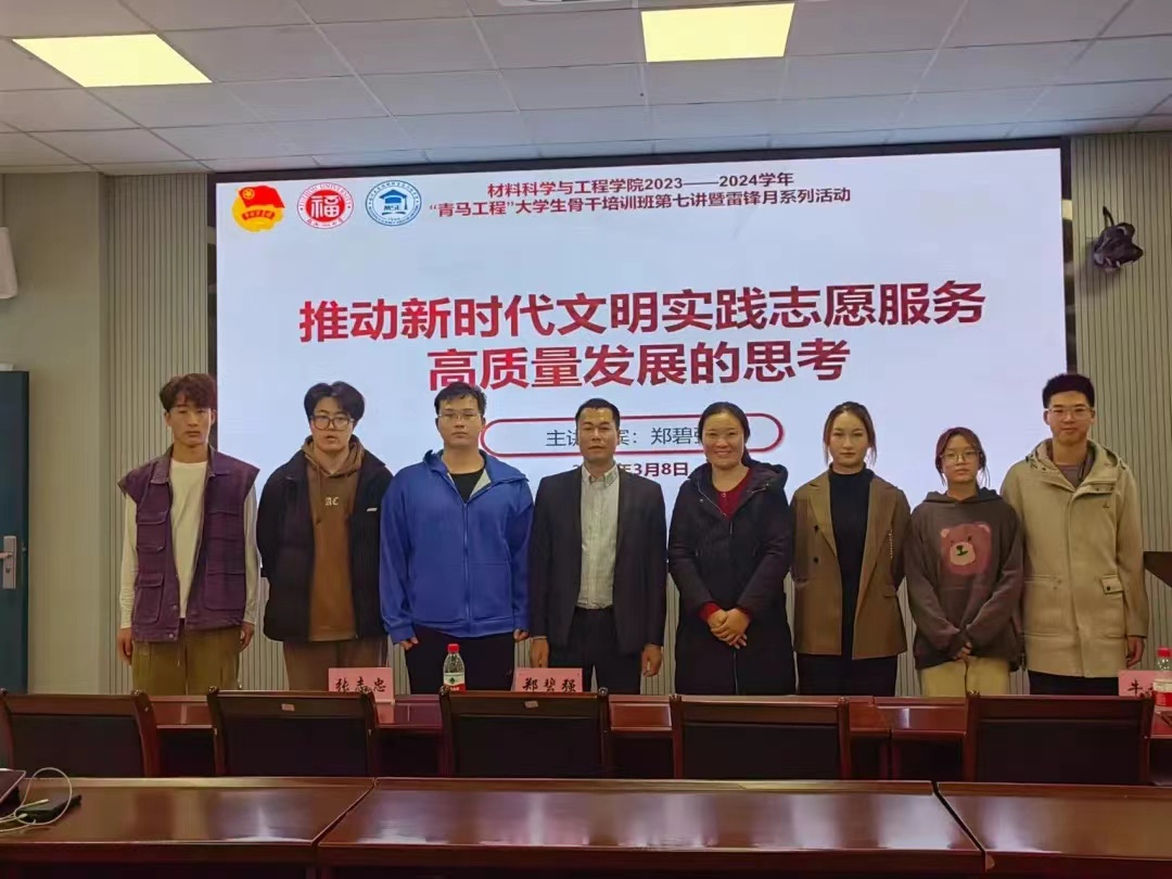 为深入学习贯彻习近平新时代中国特色社会主义思想,履行好共青团的根本任务、政治责任和工作主线,落实校团学改革要求,优化青年马克思主义者培养工作实效,着力培养“政治忠诚、理论扎实、能力出众、忠恕任事、人品服众”的青年政治人才,3月8日,成人影片 于材料楼404会议室举办2023—2024学年 “青马工程”大学生骨干培训班第七讲暨雷锋月系列活动 ,旨在认真贯彻落实党的二十大精神,大力弘扬“奉献、友爱、互助、进步”的志愿精神,推动学雷锋青年志愿服务和新时代文明实践志愿服务贡献青春力量。