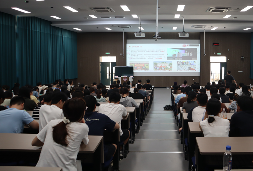 随后,张志忠副书记详细介绍了学校和学院的辉煌历程、学科特色以及科研成果,通过生动的案例和丰富的图片,让同学们全面了解了学院在学科建设、人才培养方面的卓越成就。他还特别介绍了学院在学科竞赛、科研创新、社团活动等方面的丰富多彩,展现了学院全面育人的教育理念和实践成果。