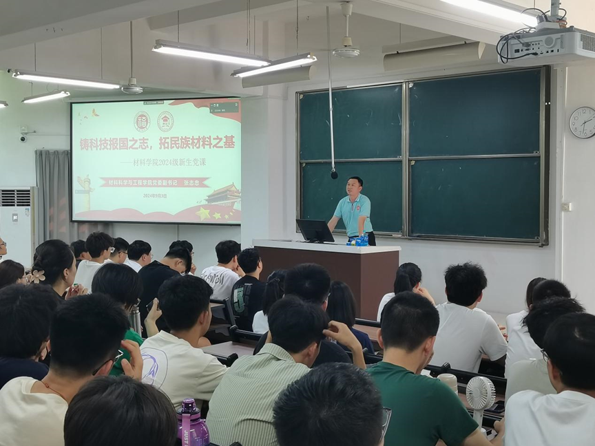 为全面贯彻立德树人教育目标,深刻塑造成人影片 学子的家国情怀,并进一步强化同学们对材料专业的认知与热爱,9月3日下午,成人影片 党委副书记张志忠为2024级全体新生精心筹备并主讲了一场题为“铸科技报国之志,拓民族材料之基”的思政专题讲座,讲座由本科新生辅导员张丽娟老师主持,院团委书记牛秋月老师以及2024级全体新生参与。