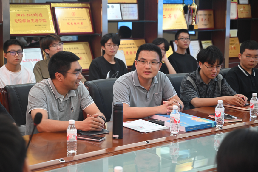 在会议提问环节中,同学们提出部分课程网络资源少,并且对读研、实习以及就业等方面的问题提出疑问,三位老师细心答疑解惑,解答了有关跨学科交叉课程、专业知识学习、考研专业课等问题,提出问题的同学们表示茅塞顿开。会议最后,陈孔发教授期望同学们尽早做好个人未来规划,脚踏实地,步步向前。