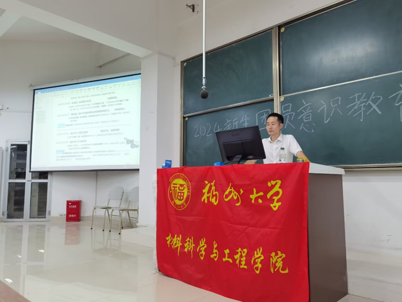 本次教育主题为“奋斗是青春最亮丽的底色,行动是青年最有效的磨砺”,叶阁泽老师用风趣幽默的讲课方式,并结合真实事例,使现场氛围轻松活跃,掌声不断。叶阁泽老师强调每一位共青团员都要学习团的基本知识,积极参与团的活动,以身作则履行团员义务,担当团员责任,勇于砥砺奋斗。此外,叶阁泽老师还着重介绍了我校老师、学生党员奉献自我、服务社会的优秀事迹和在科创竞赛方面取得的成就,号召每一位同学都积极向榜样看齐。最后,叶阁泽老师与同学们积极互动,现场互动气氛十分火热。在此次会议最后叶阁泽副书记深情寄语全体2024级参会新生对于自己的大学生生涯做好规划。
