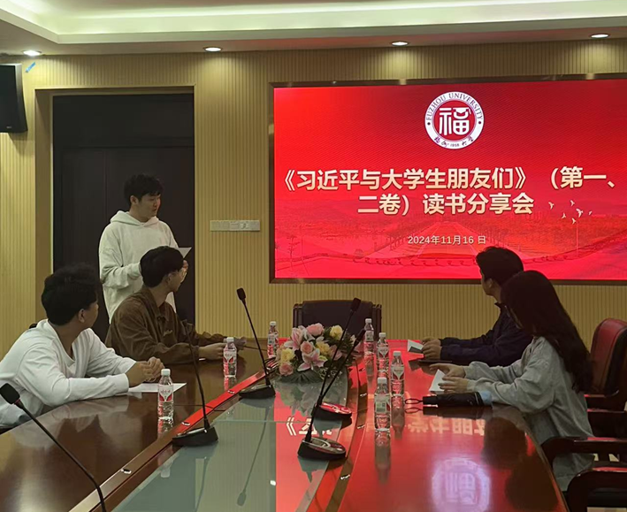 在《习近平与大学生朋友们》(第一、二卷)读书分享会上,范晓聪同学说道:“通过阅读这本书,我深切感受到习近平总书记对大学生的关心和期望。书中一个个故事,让我更加坚定了努力学习专业知识,为实现中华民族伟大复兴贡献自己力量的决心。”他结合自己参与的社会实践活动,谈到书中的理念如何在实际中给他启发,鼓励同学们要像总书记所期望的那样,扎根中国大地,了解国情民情。