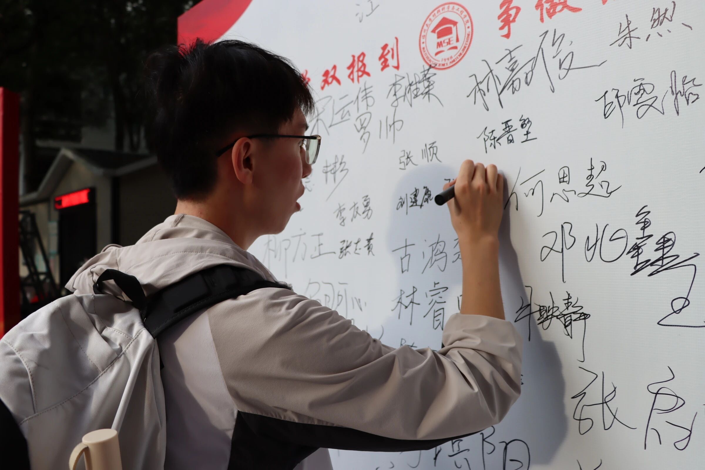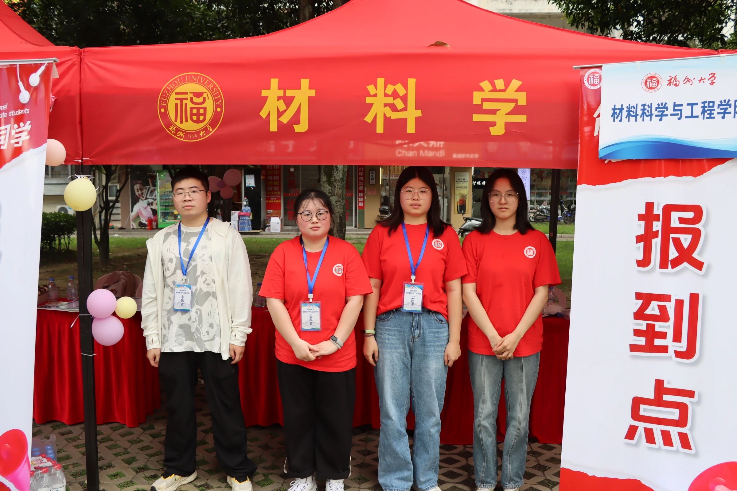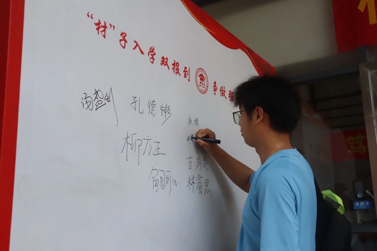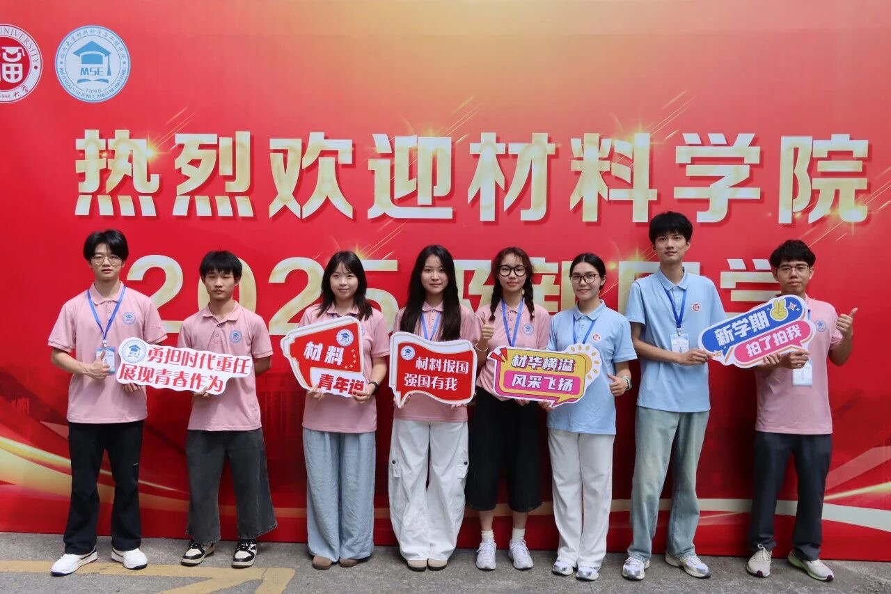 注册点现场,志愿者们以饱满热情投入迎新工作,一边高效协助新生办理注册手续,一边耐心解答宿舍钥匙领取等各类疑问。即便面对炎热的天气,他们始终保持微笑、细致回应,用材料人的热忱与负责,让初入校园的新生深切感受到集体的温暖与关怀。