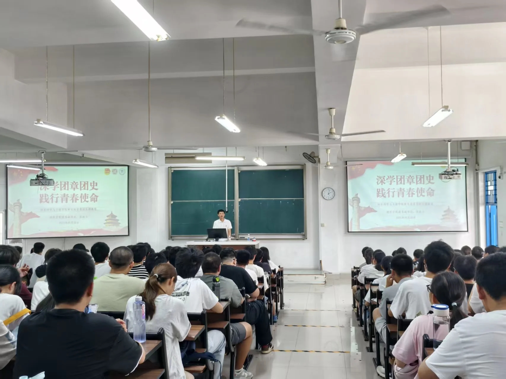 习近平总书记曾指出:“青年兴则国家兴,青年强则国家强。”为切实加强成人影片 2025级本科新生的团员思想意识建设,筑牢理想信念根基,9月28日下午2点,学院在铜盘校区B210教室开展“深学团章团史,践行青春使命”新生团员意识教育专题讲座暨“团干部上讲台”活动。本次讲座由学院团委副书记张庭士老师主讲,学院2025级全体本科新生参加。