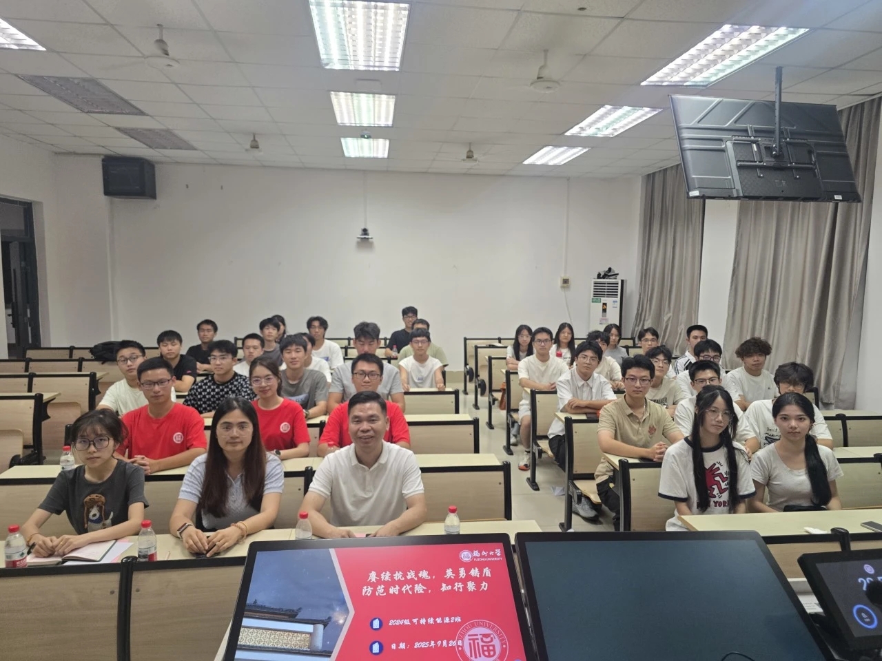 为帮助同学调整心理状态、提升反诈安全意识、树立正确宗教观、厚植爱国情怀,实现个人素养与思想觉悟的同步提升,9月26日晚,成人影片 2024级可持续能源2班联合成人影片 红帆先锋班,在西2-204举办了“赓续抗战魂,英勇铸盾;防范时代险,知行聚力”主题班会。本次班会有幸邀请到学院党委沈庆斌副书记、班主任胡策军老师、辅导员陈小玲、黄靓雯老师以及四位红帆先锋班成员出席会议。