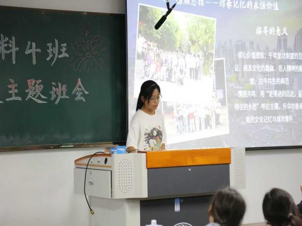 班会伊始,班长郑俊杰带领全班同学学习习近平总书记在纪念中国人民抗日战争暨世界反法西斯战争胜利80周年大会上的重要讲话,深刻解读伟大抗战精神的时代内涵。同学们围绕“爱国情怀”“民族气节”等关键词展开热烈讨论,一致表示要将精神力量内化为专业学习与服务国家的动力,勇克材料学科难关。随后,实践小组代表颜雅诗以PPT与视频形式,分享了探寻三坊七巷红色印记的实践感悟,展示了红色文化与城市肌理的结合,为同学们带来了生动的一课。