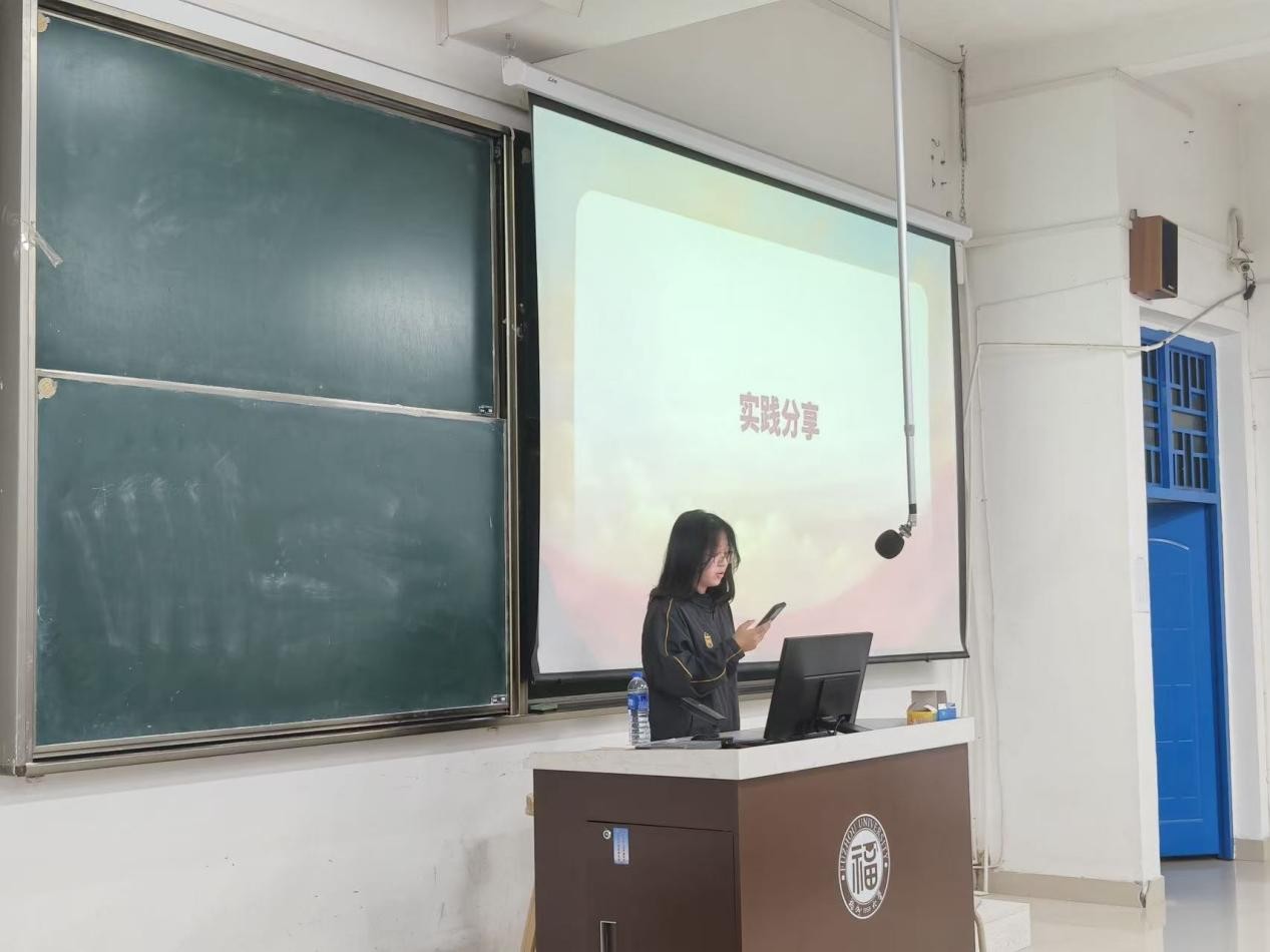 在实践教育环节,学习委员侯卓含同学以“红色闽脉,薪火相传”为主题展开分享,将课外实践与红色历史相结合,打破书本局限。在回望峥嵘岁月的同时,感受革命先辈的坚定信念与奉献精神。
