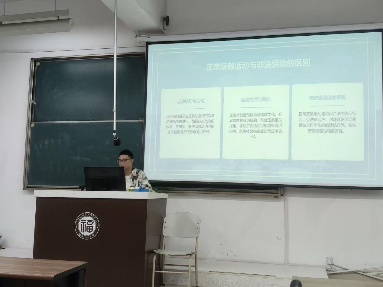 在宗教法规教育环节,为深入普及法治知识、引导同学们树立正确的宗教观,班长黄锐涵精心组织并开展了宗教法规专题教育活动。聚焦我国现行的宗教政策和相关法律法规,通过系统讲解核心内容与基本原则,使同学们对我国依法管理宗教事务的方针有了更清晰、更具体的认识。