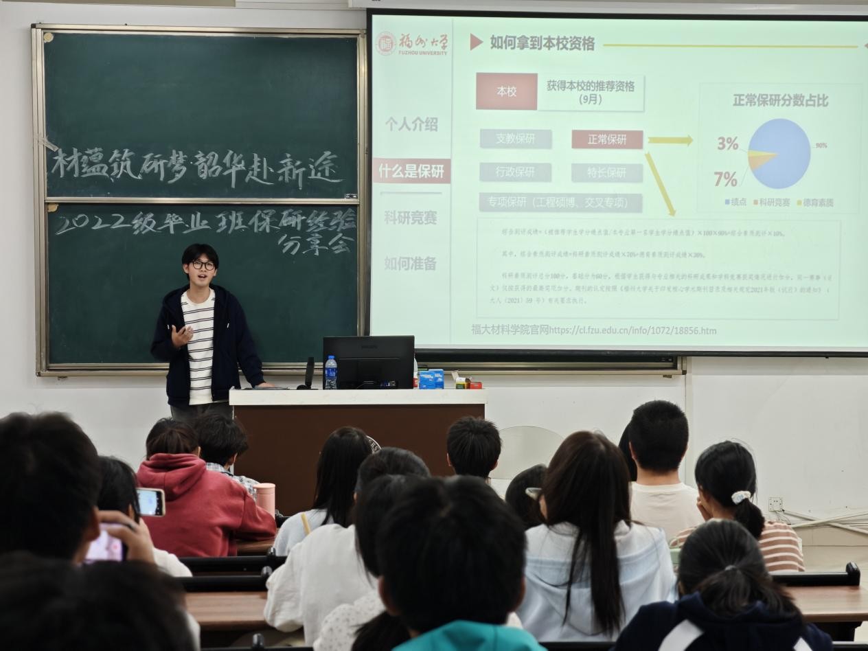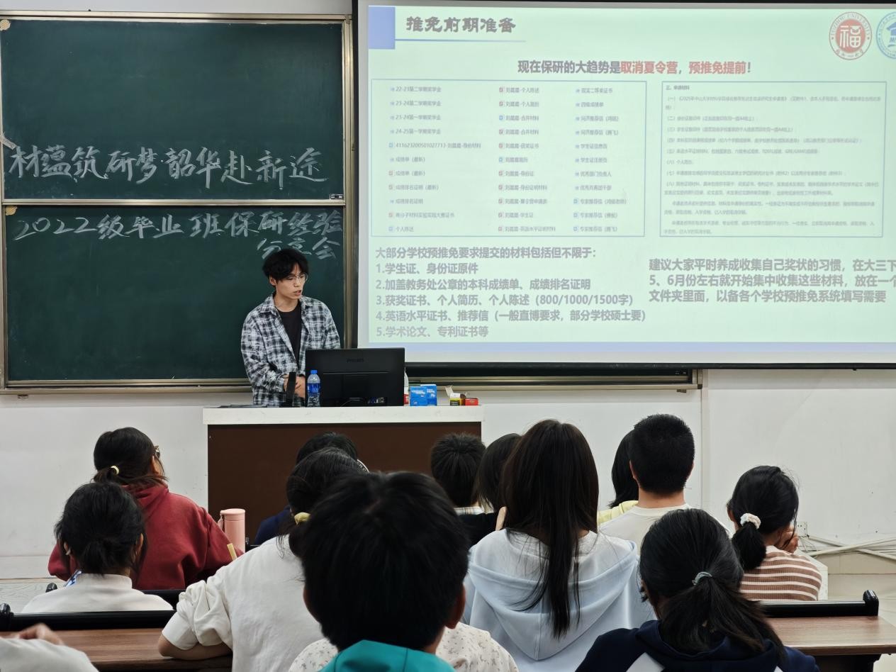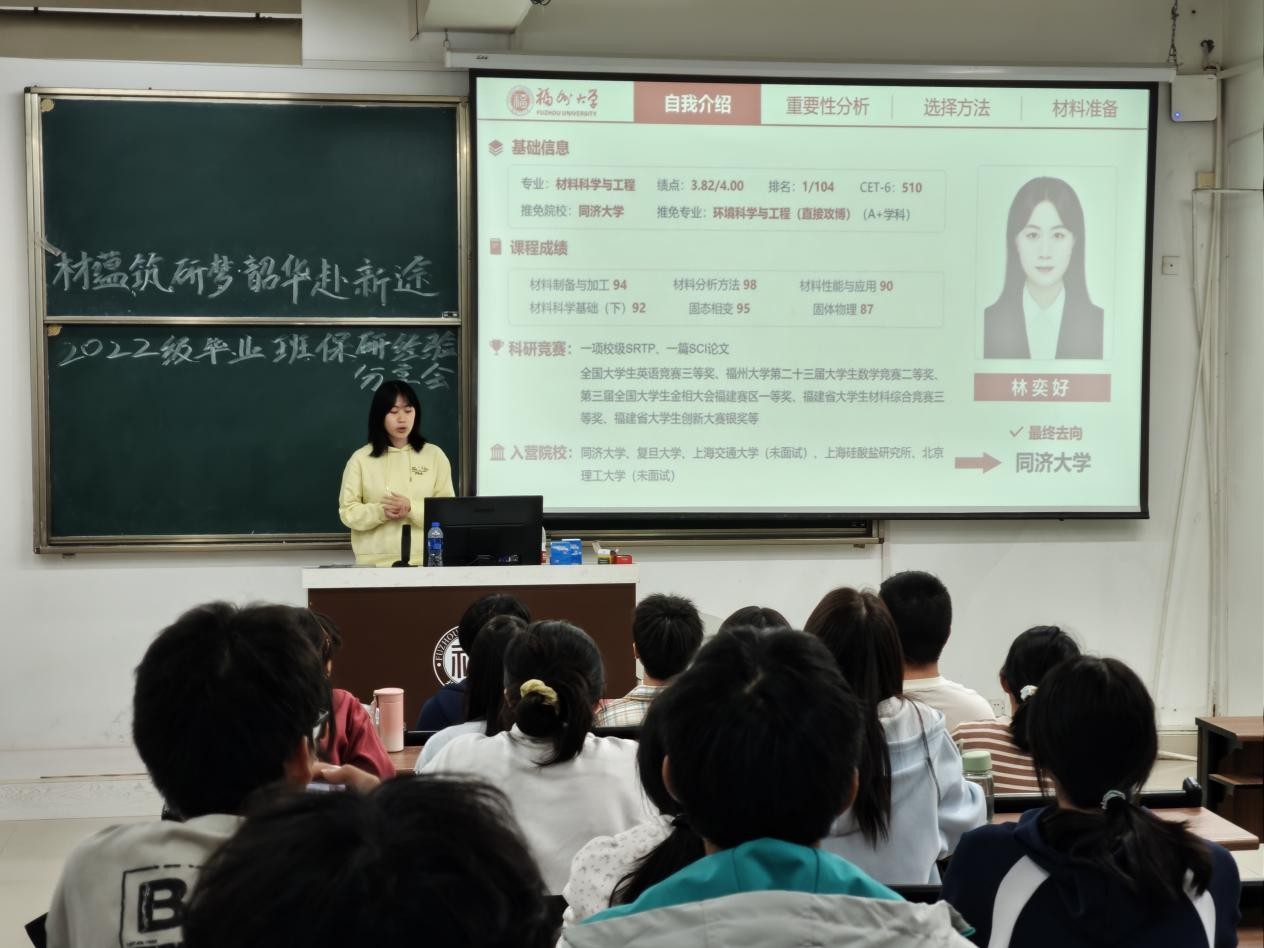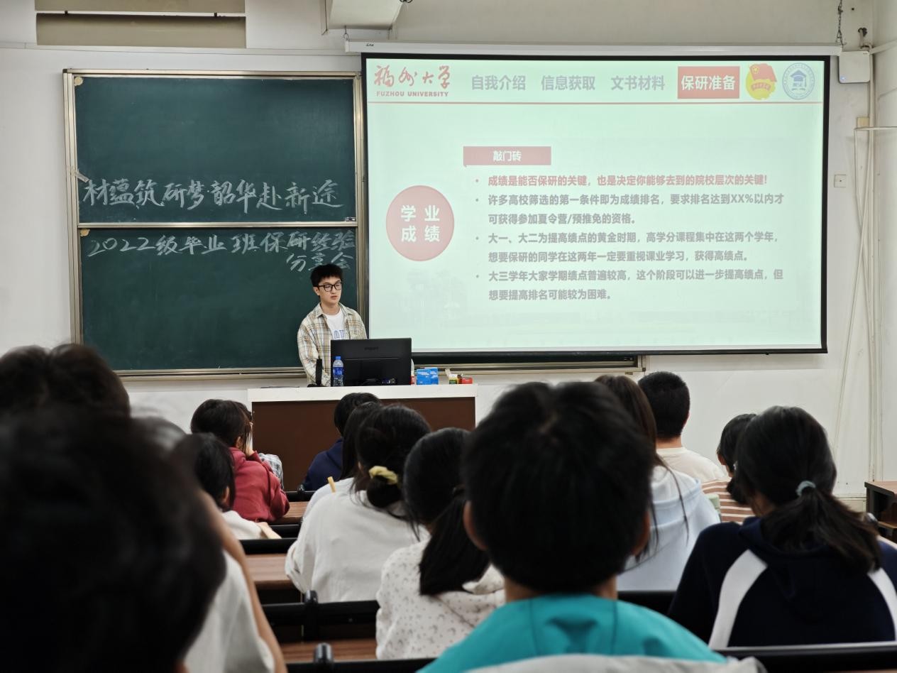 为帮助大一学子搭建考研保研认知框架,明晰发展路径与核心要求,锚定未来学业方向。11月11日晚,成人影片 举办了“材蕴筑研梦·韶华赴新途”2022级毕业班考保研经验分享会第一期——保研专场,特别邀请四位学长学姐分享他们在学习与保研之路上的宝贵经验,并对同学们的困惑给予解答。
