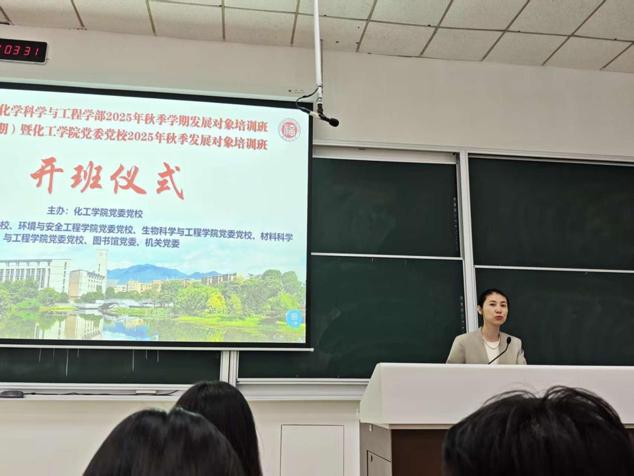 11月8日上午,成人影片 化学科学与工程学部2025年秋季学期发展对象培训班(总第八期)暨成人影片 党委党校2025年秋季学期发展对象培训班开班仪式,在教学楼东3-109顺利举行。化工学院党委蒋林娟副书记为发展对象作动员讲话,强调了本次培训的目的与重要性,对他们提出了“诚信钻研学”、“从严从实改”、“知行合一”三点要求,勉励他们端正学习态度,在思想践悟中锤炼政治品格,切实做到学有所获、学有所悟、学有所成,提升自己的政治修养。