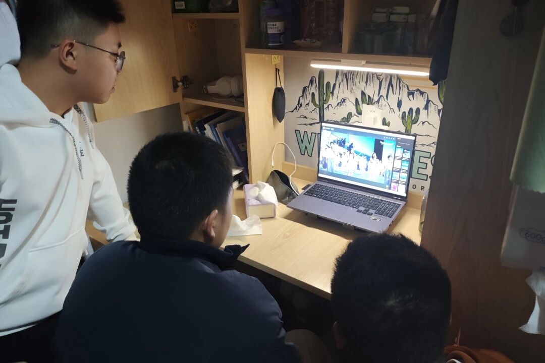 本次活动采用“线上+线下”双线联动模式同步推进。线下主会场设于嘉锡楼313会议室,同学们聚精会神,共同见证荣耀时刻;线上分会场则延伸至各宿舍,同学们以寝室为单位通过直播平台同步共享这份喜悦与荣光。