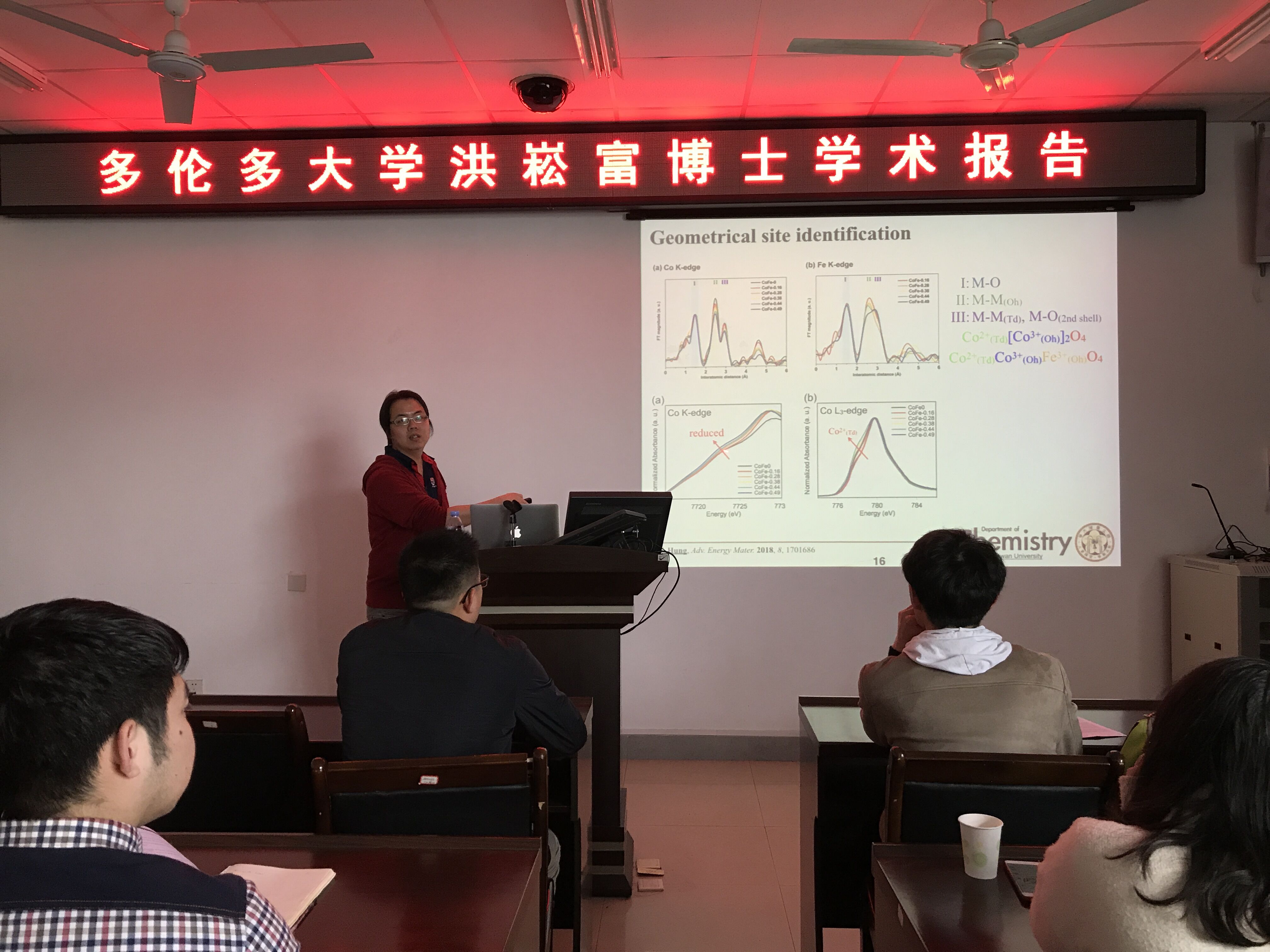 2019年4月4日,多伦多大学洪淞富博士应邀莅临材料科学楼404为成人影片 师生带来一场题为“Development of High-efficient Electrocatalysts and Photoelectrocatalysts and the In-/Ex-situ Analysis”的学术报告,报告由“闽江学者”肖方兴教授主持。