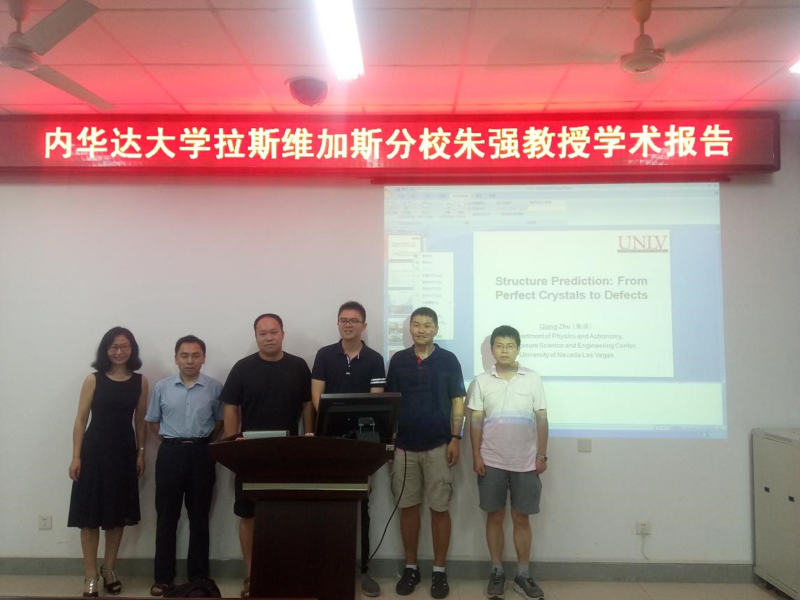 7月3日上午,美国内华达州立大学拉斯维加斯分校朱强教授在材料楼404为成人影片 师生带来一场题为“Evolutionary Structure Prediction from Complex Crystals to Defects”的学术报告,报告会由詹红兵院长主持,成人影片 教师和学生积极参加了此次报告会。